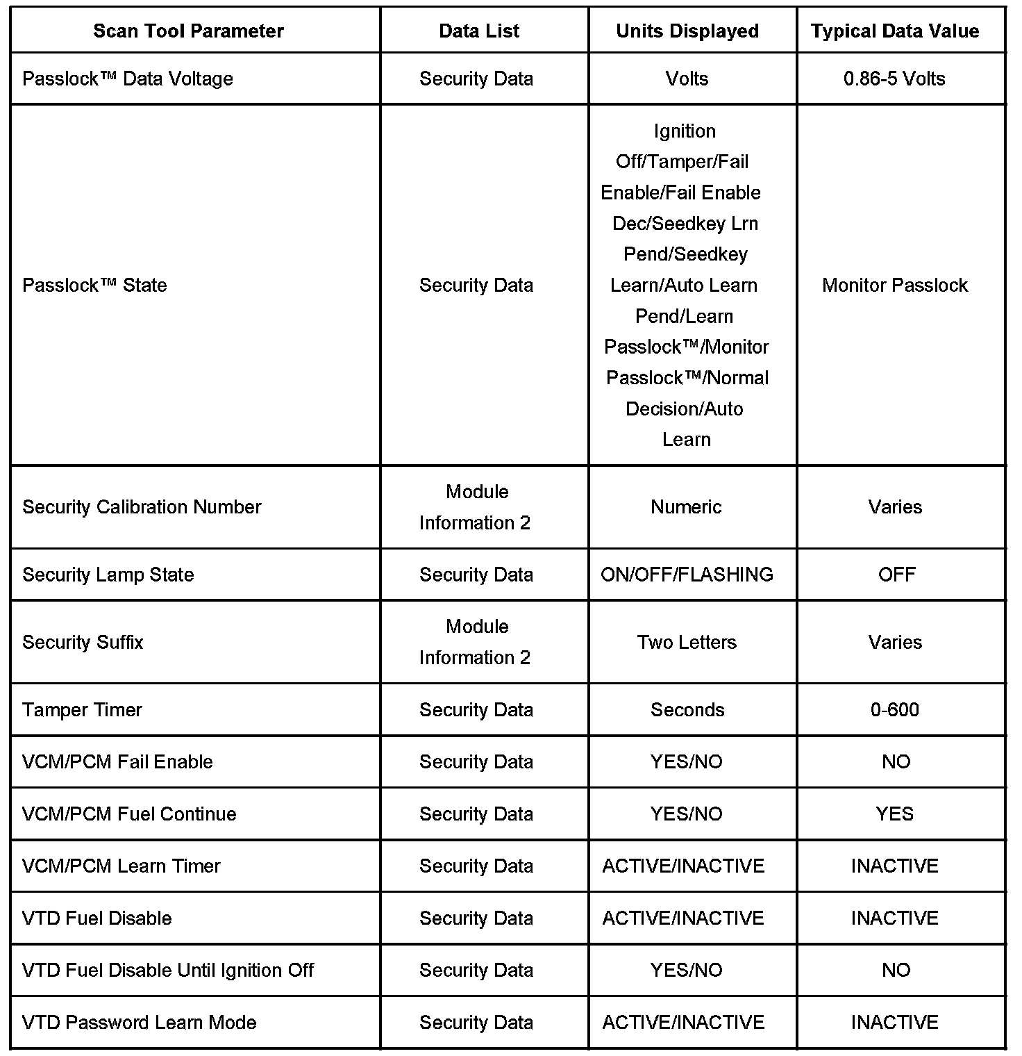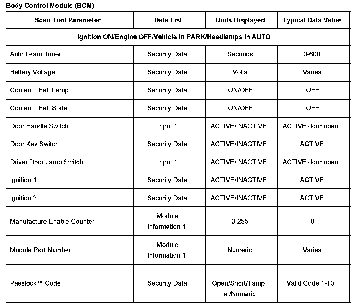 Scan Tool Data List - Antitheft System