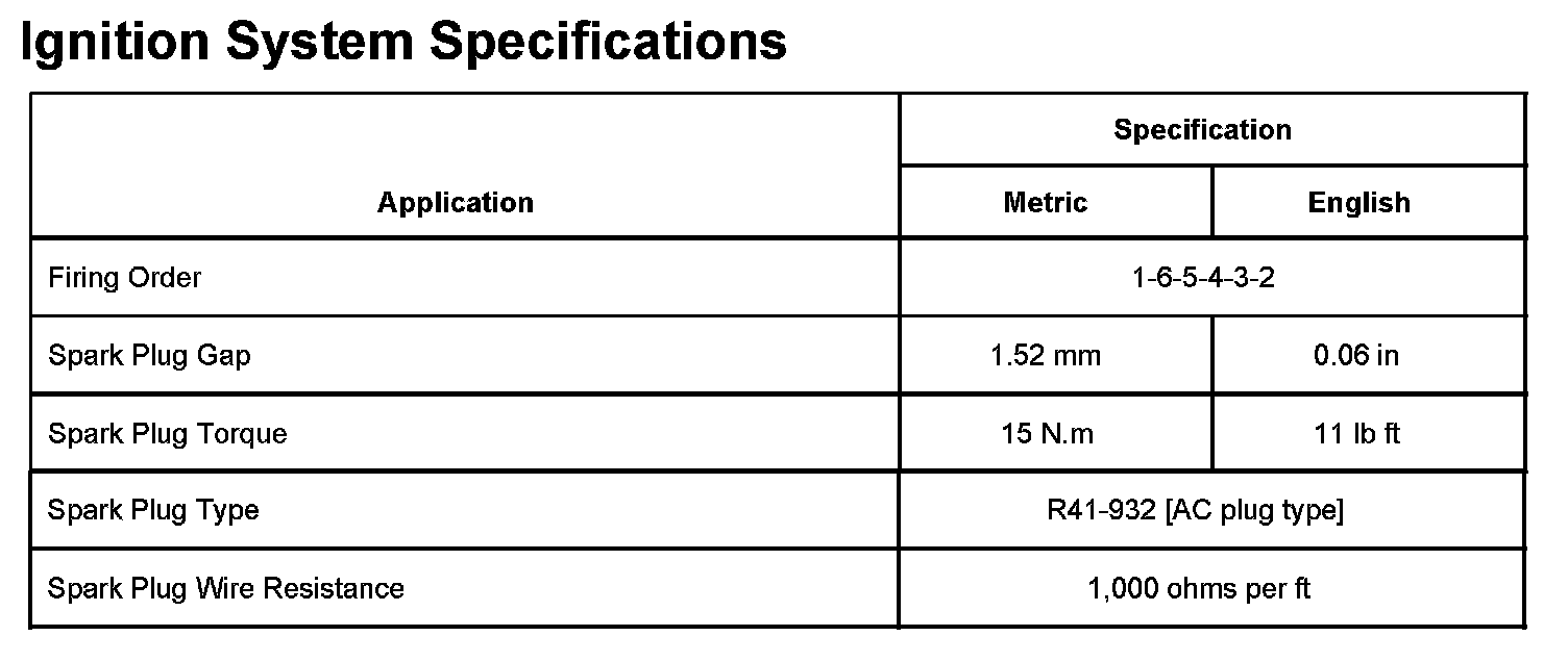 Ignition System Specifications: