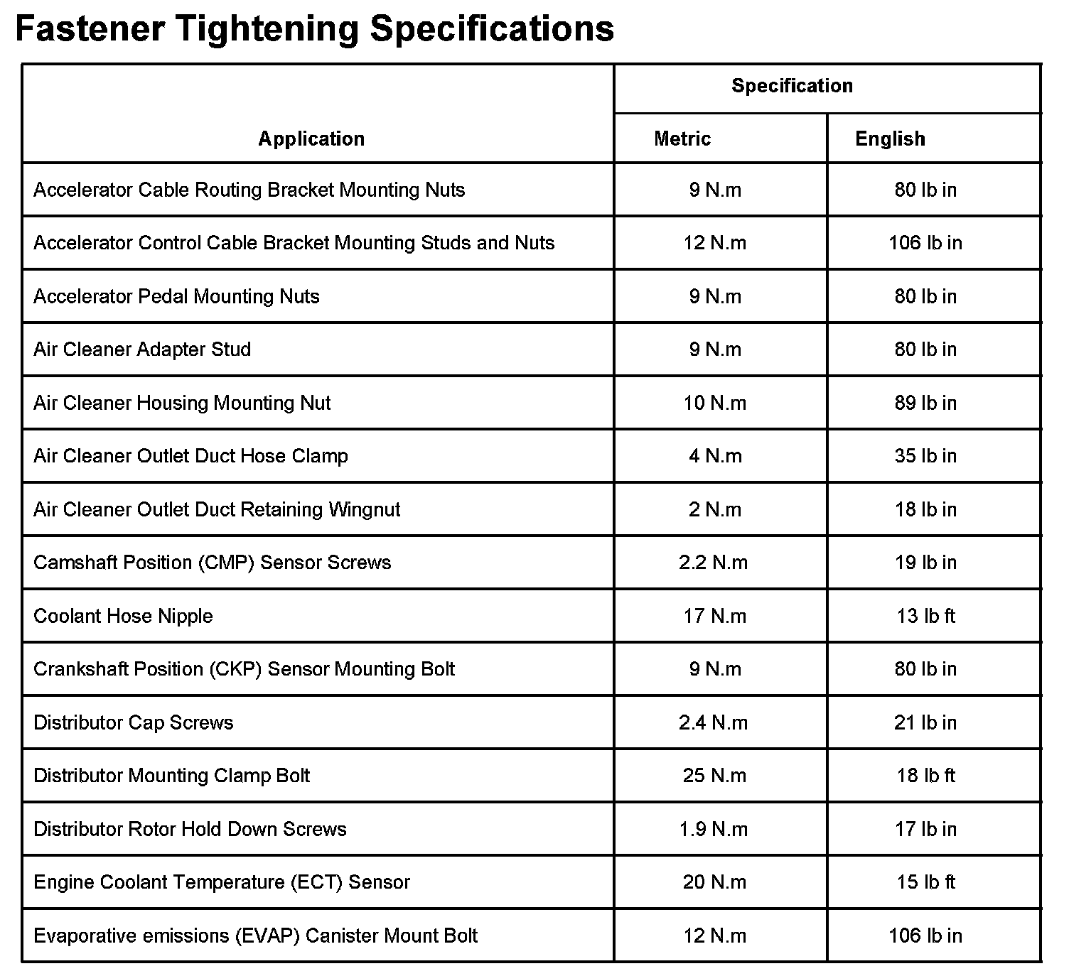 Fastener Tightening Specifications Part 1: