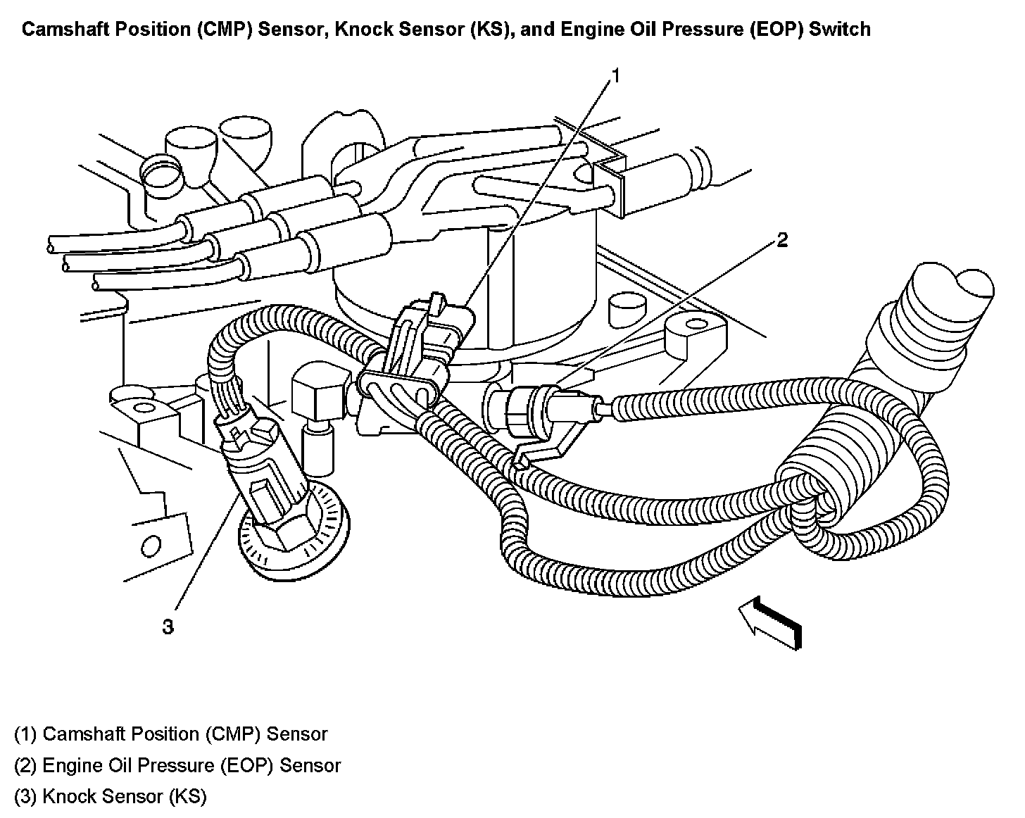 Camshaft Position (CMP) Sensor, Knock Sensor (KS), and Engine Oil Pressure (EOP) Switch: