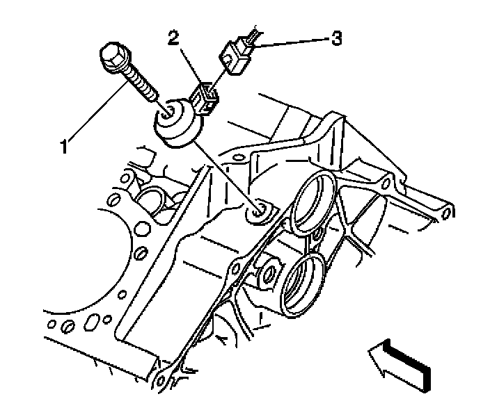 5. Remove the knock sensor retaining bolt (1).