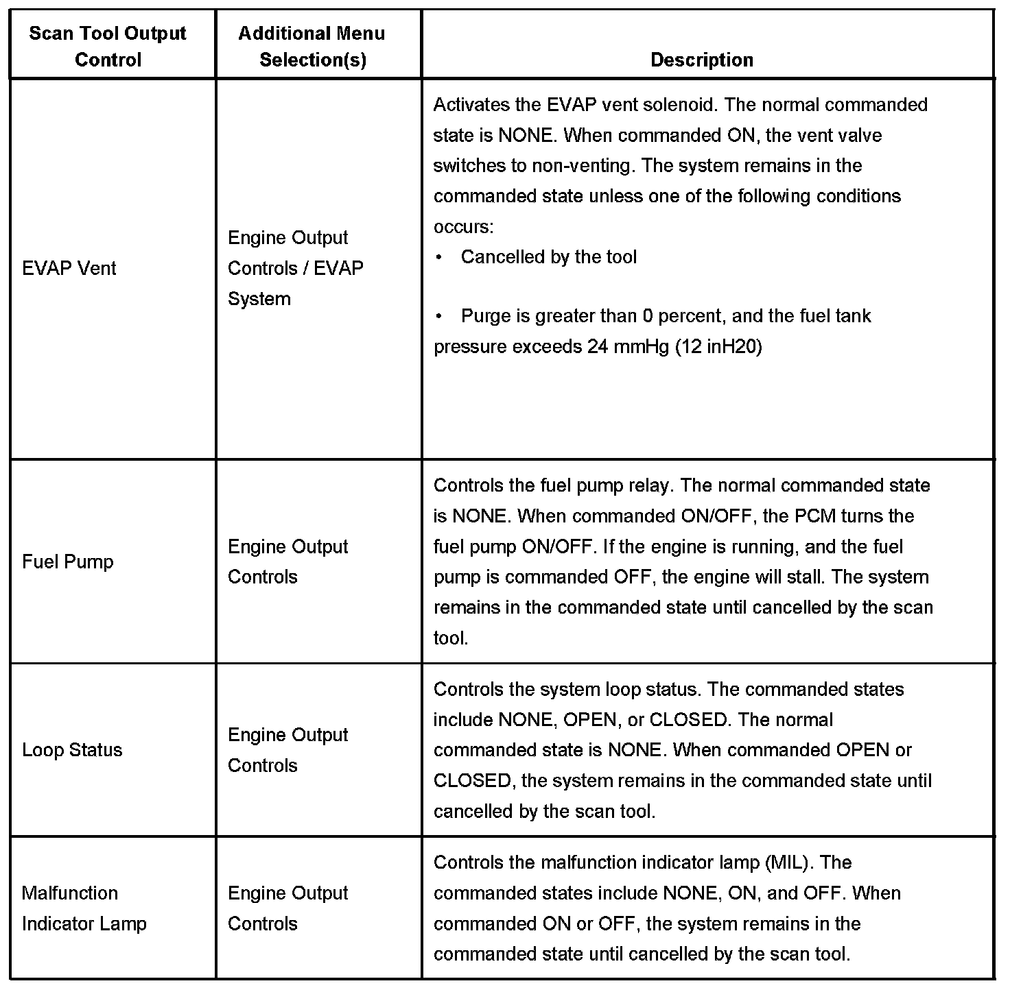 Scan Tool Output Controls