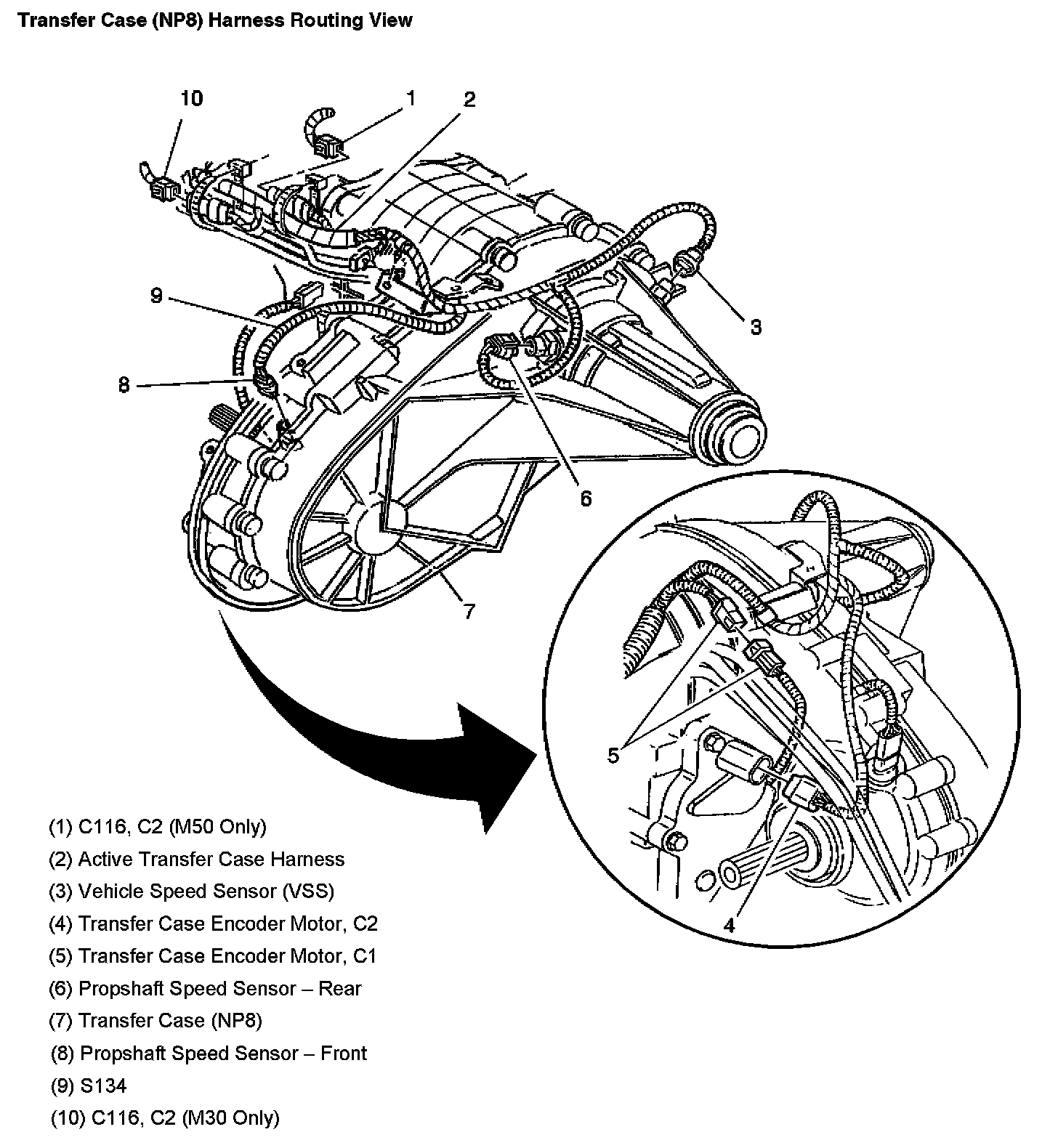 Transfer Case (With RPO Code NP8) Harness Routing View: