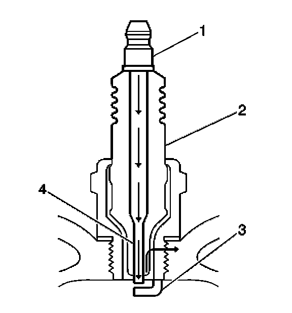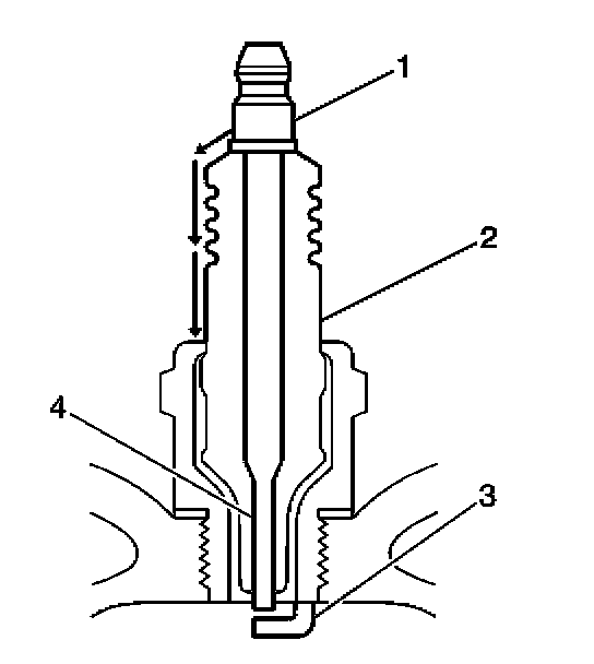 - Inspect for the correct spark plug torque. Refer to Ignition System Specifications. Insufficient torque can prevent correct spark plug operation. An over torqued spark plug, causes the insulator (2) to crack.