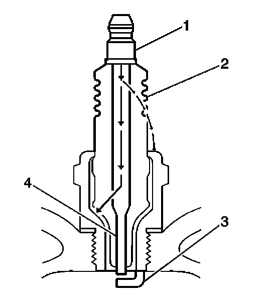 - Inspect for signs of tracking that occurred near the insulator tip instead of the center electrode (4).