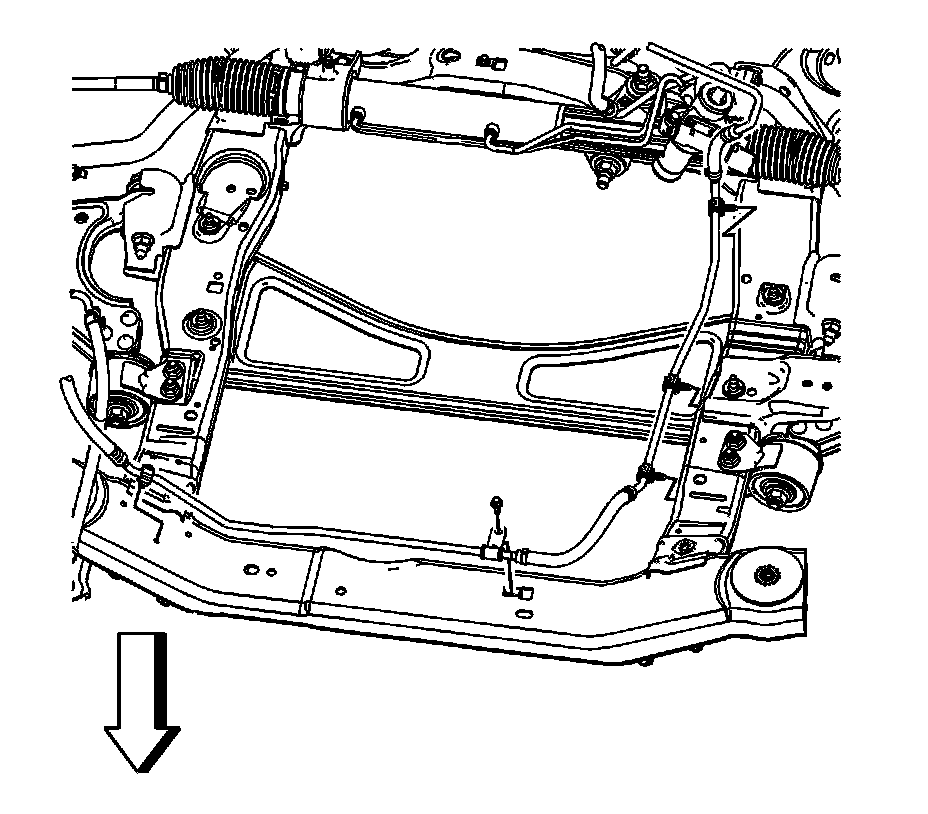 Important: Ensure that the power steering cooler line does not become trapped by the engine mount during this step.