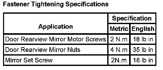 Fastener Tightening Specifications:
