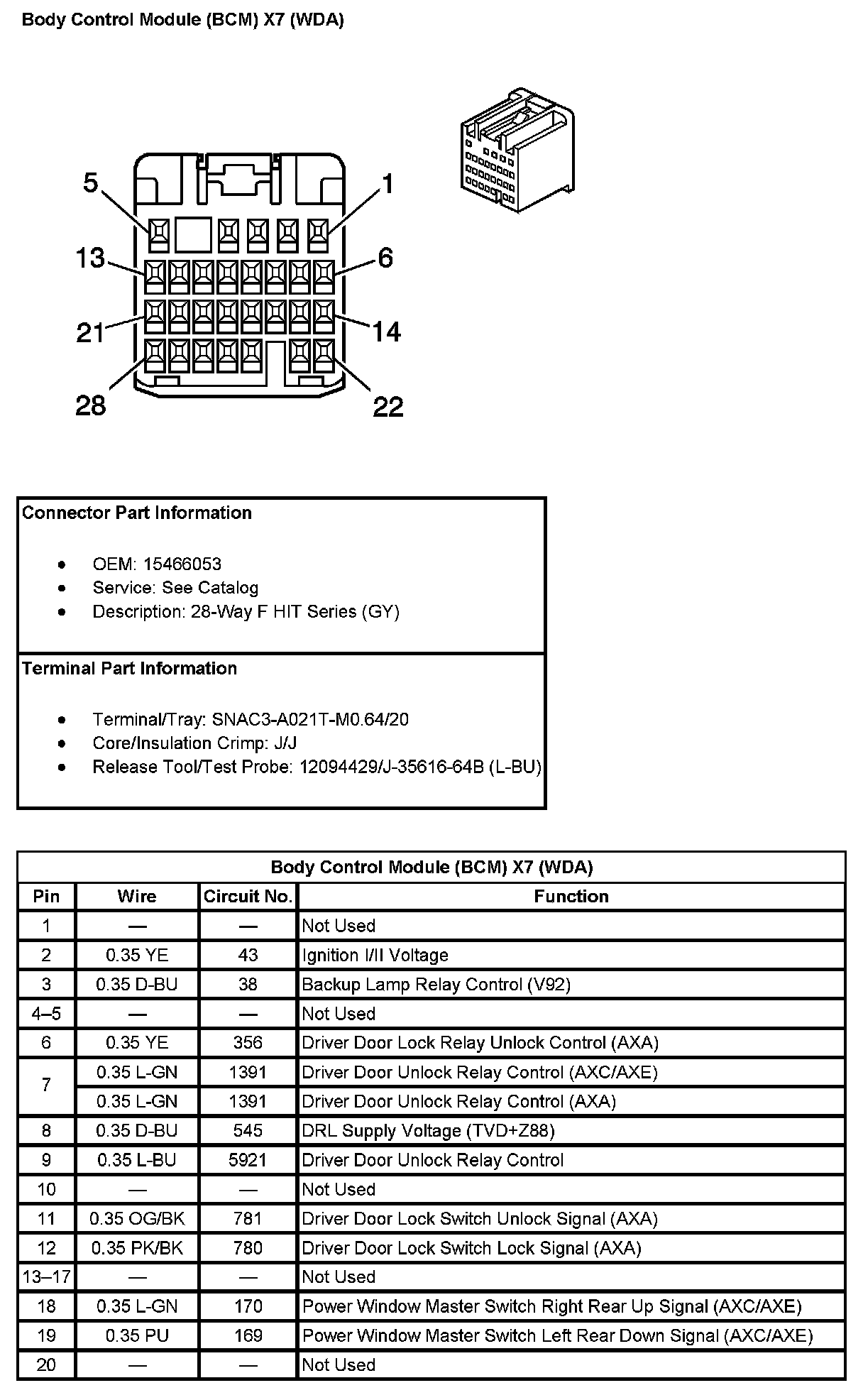 Body Control Module (BCM) X7 (With RPO Code WDA) Pin 1 To 20:
