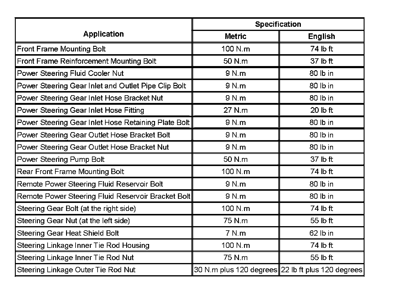 Fastener Tightening Specifications: