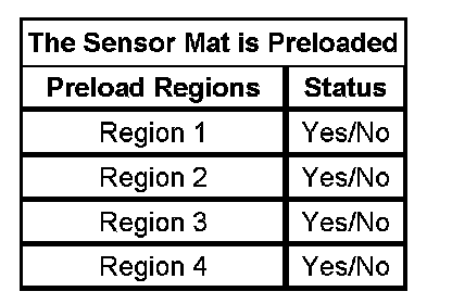 The PPS will fail the preload test when a region has detected a preload/pressure on it. If a preload test fails, the scan tool will display a chart as illustrated below. A Yes status indicates which region(s) have a preload condition. Refer to the chart below and the above illustration to identify the failed region.