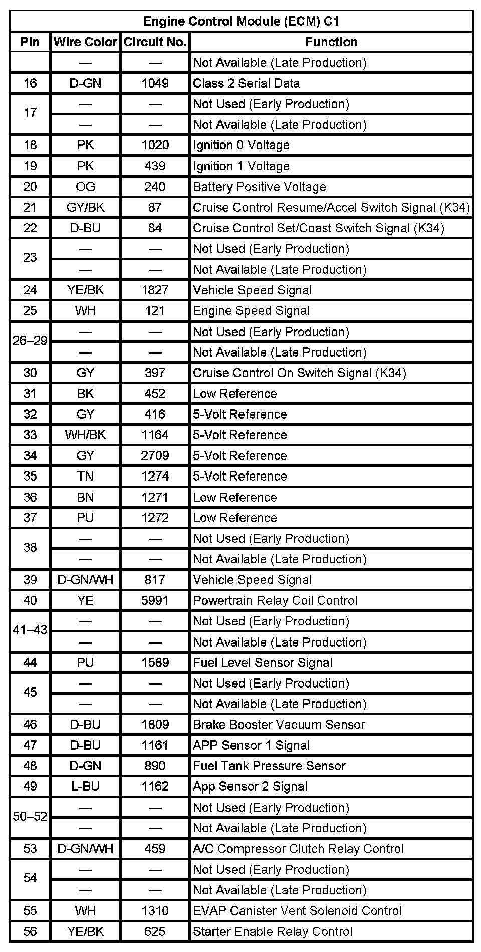 Engine Control Module (ECM) C1 (Pin 16 To 56):