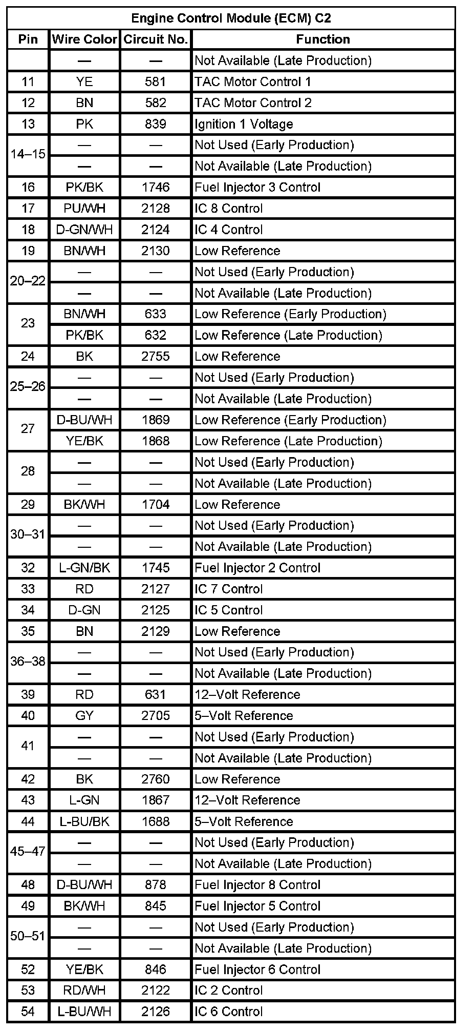 Engine Control Module (ECM) C2 (Pin 11 To 54):