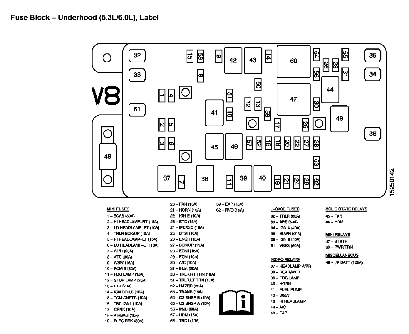 Fuse Block - Underhood (5.3L/6.0L), Label:
