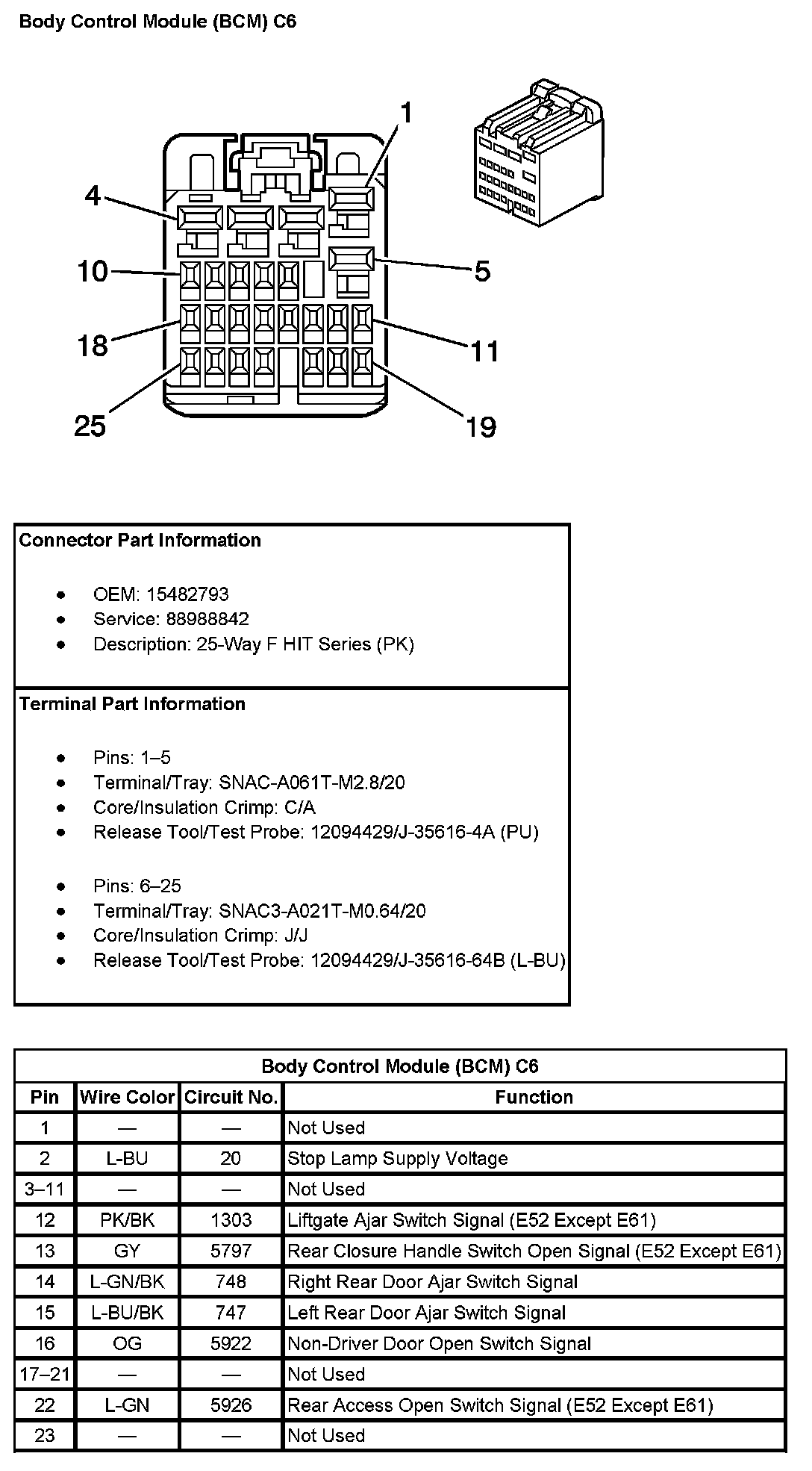 Body Control Module (BCM) C6 (Pin 1 To 23):