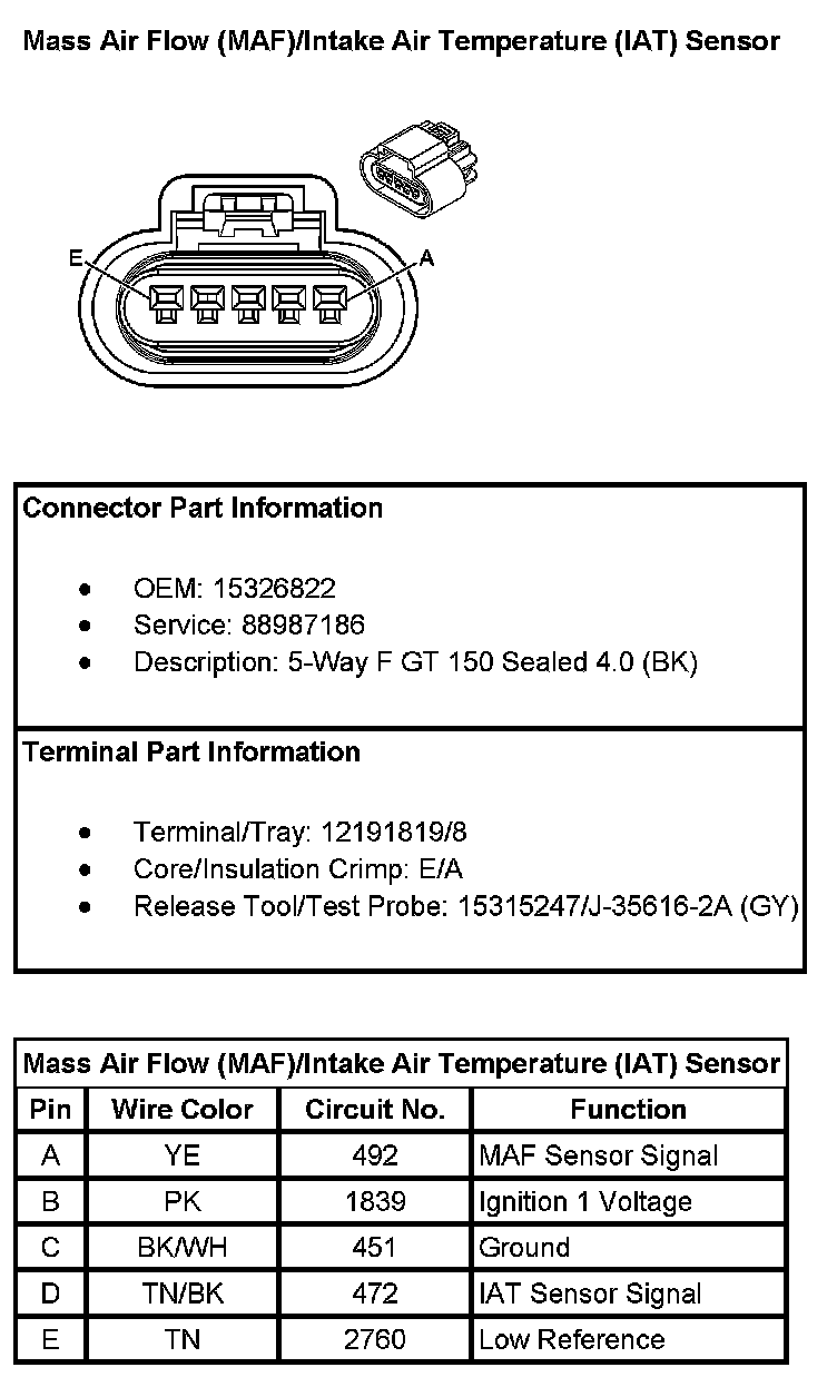 Mass Air Flow (MAF)/Intake Air Temperature (IAT) Sensor:
