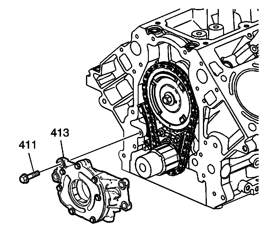 Install the oil pump bolts (411).