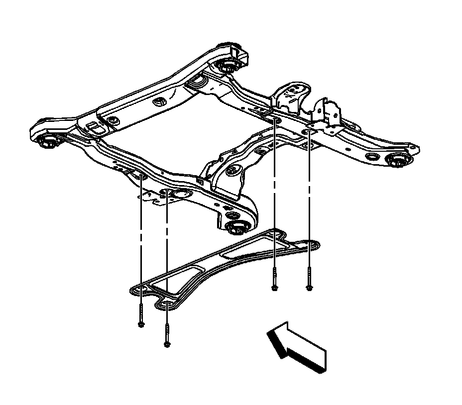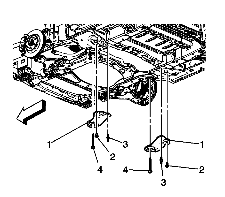 Important: If the frame insulator bolt does not screw in smoothly, run a tap through the frame nut in the body in order to remove foreign material. Ensure the tap does not punch through the underbody.