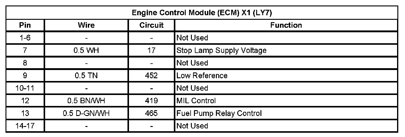 Engine Control Module (ECM) X1 (LY7) (Pin 1 To 17):