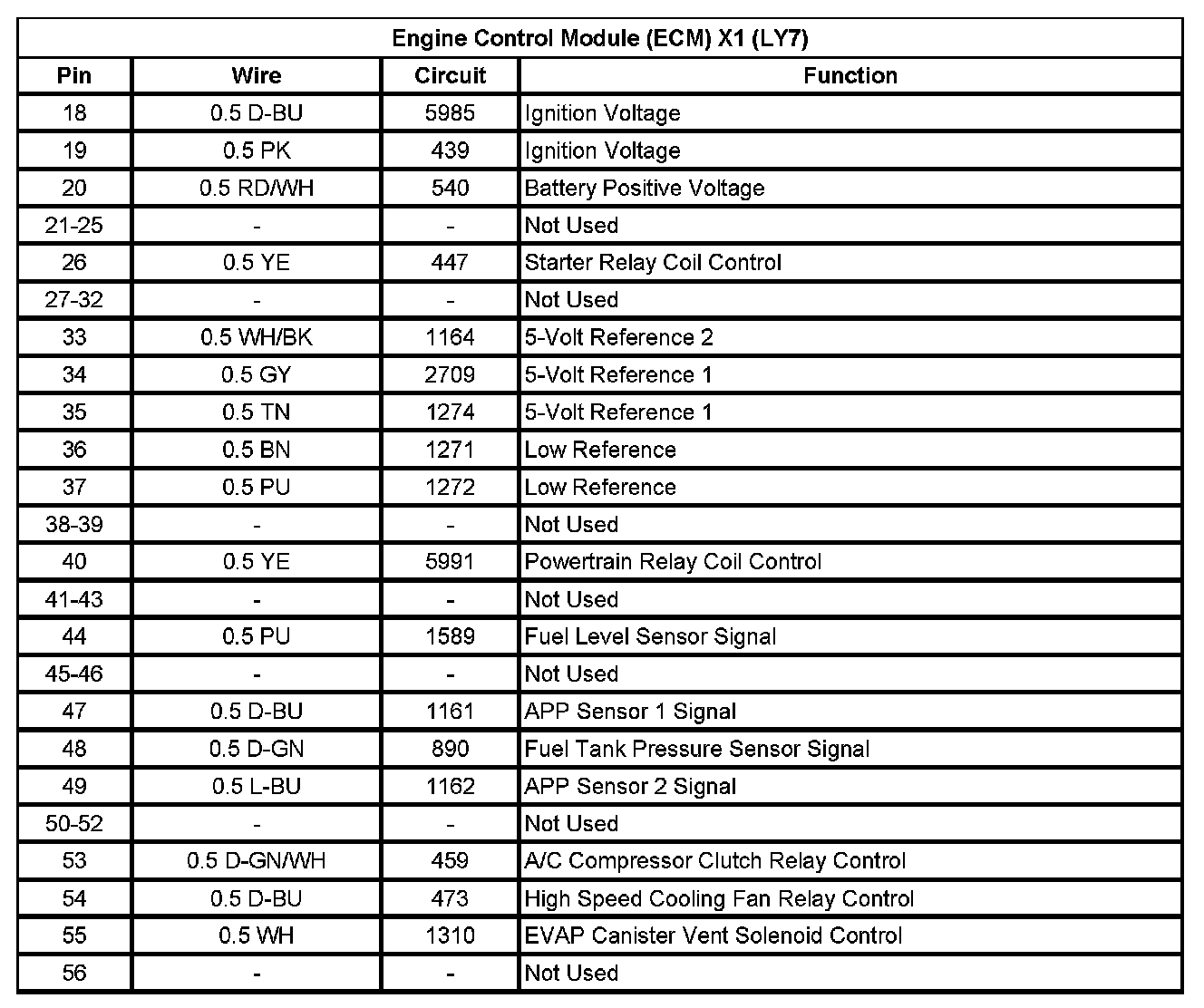 Engine Control Module (ECM) X1 (LY7) (Pin 18 To 56):