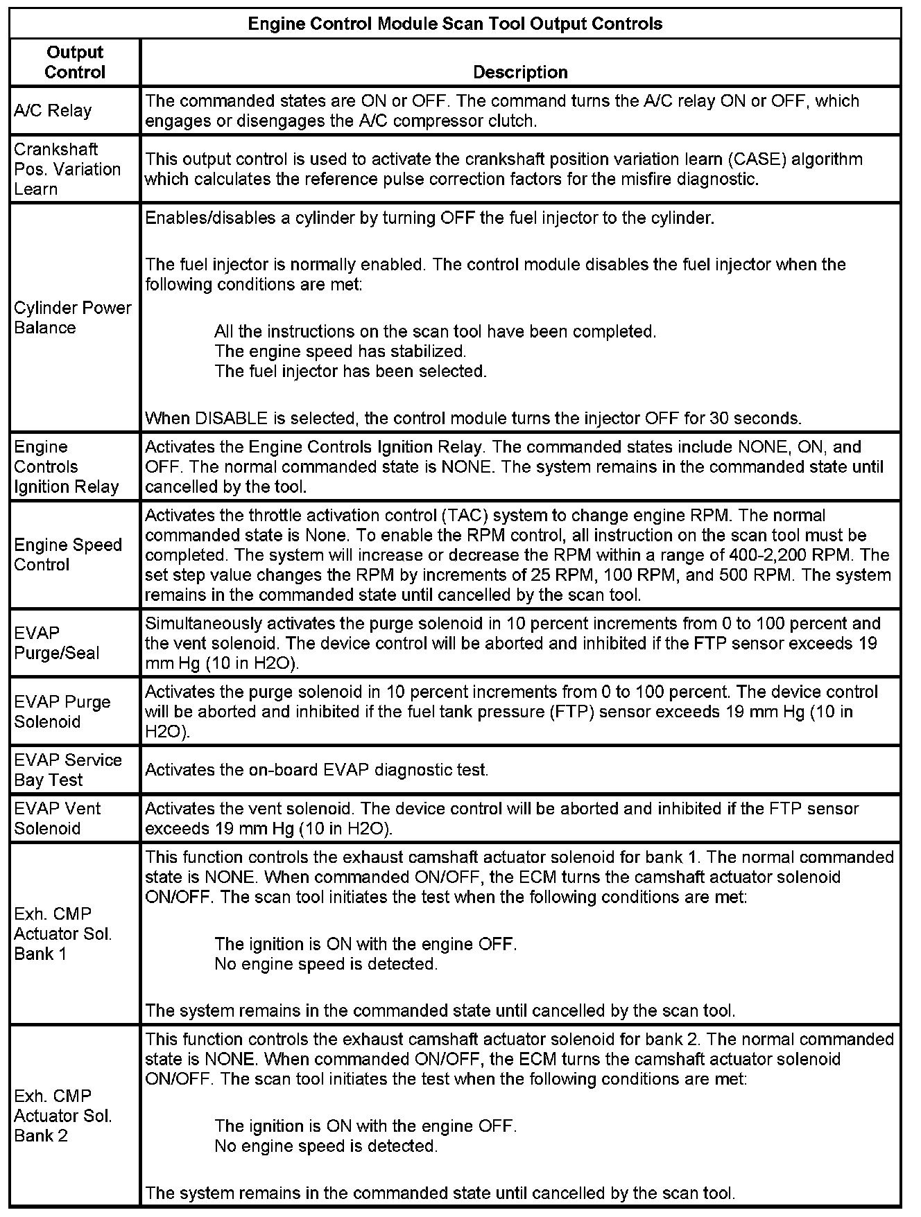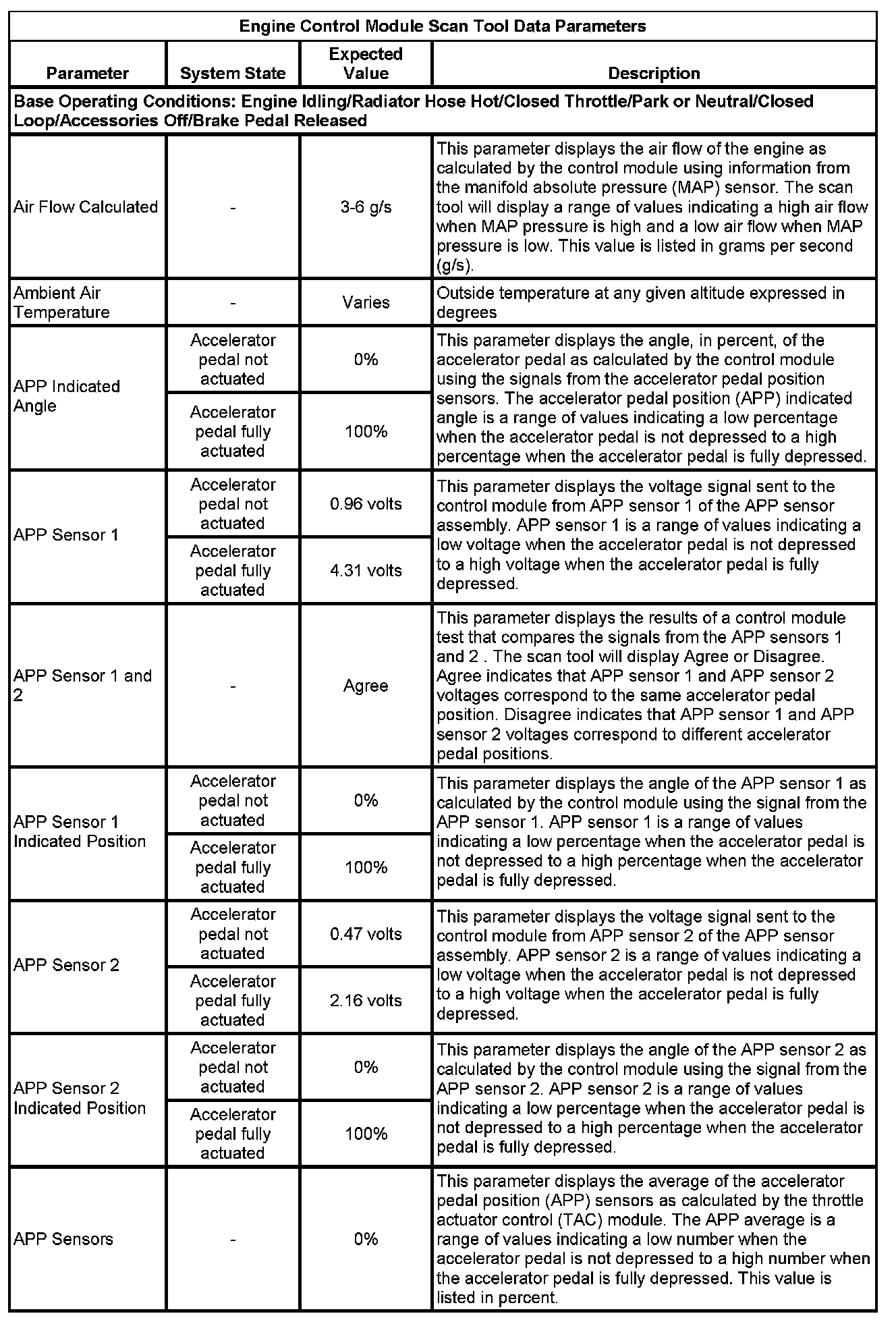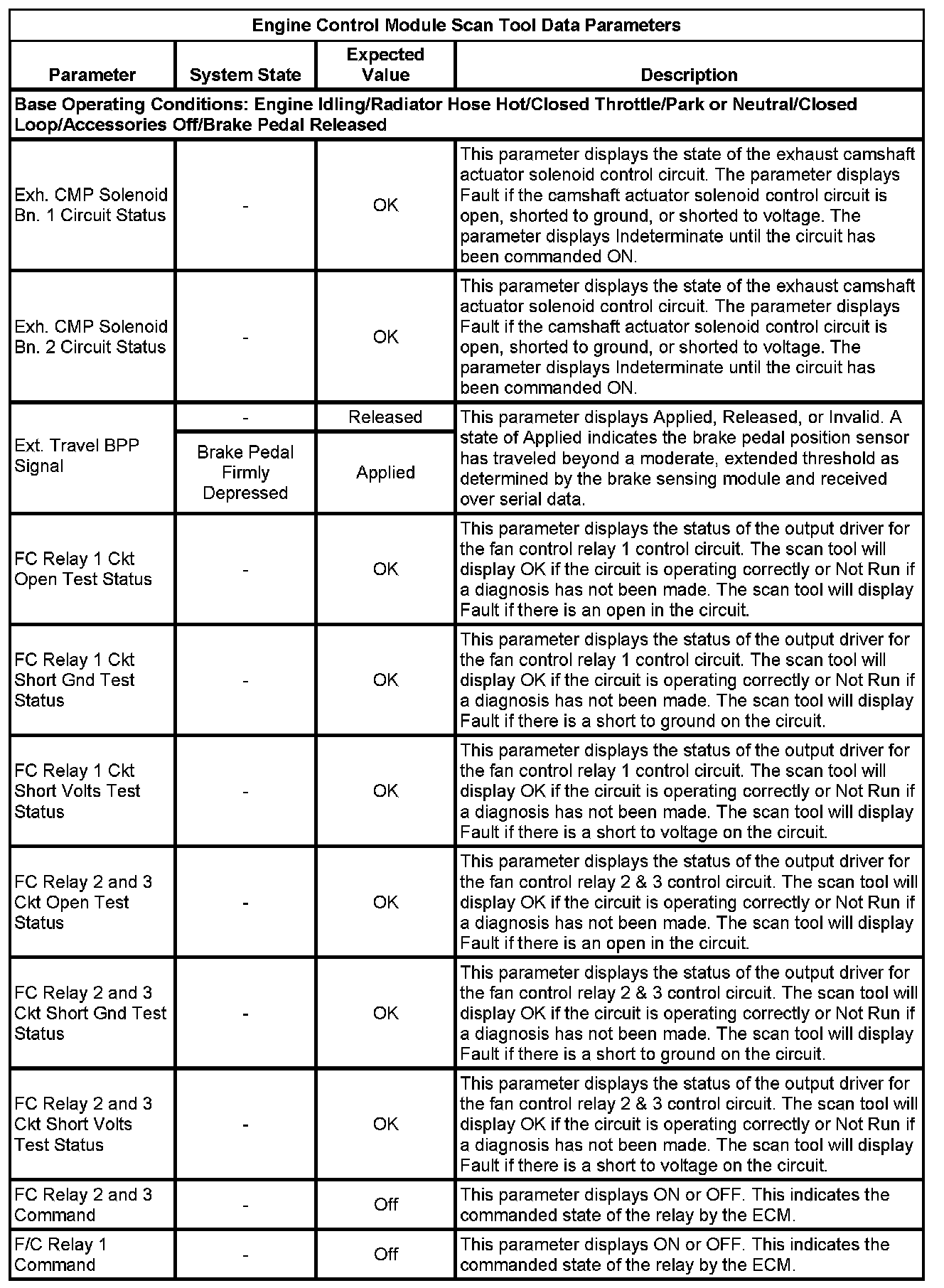 The Engine Control Module Scan Tool Data List contains all engine-related parameters that are available on the scan tool. The list is arranged in alphabetical order. A given parameter may appear in any one of the data lists, and in some cases may appear more than once, or in more than one data list in order to group certain related parameters together.
