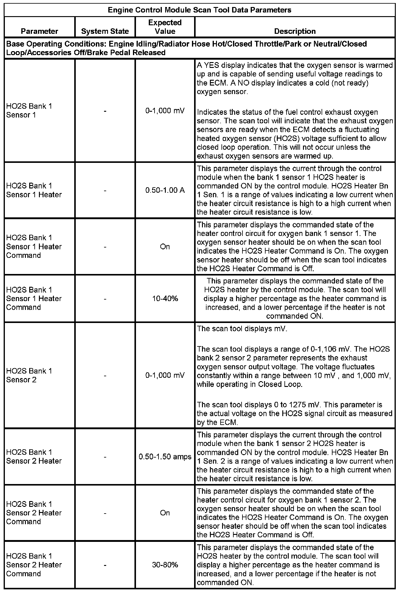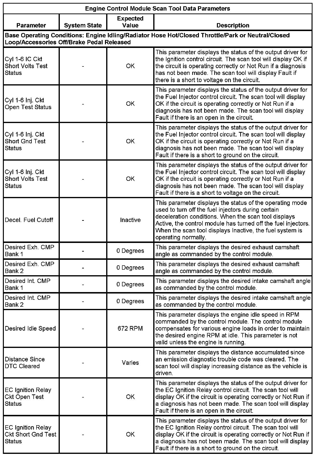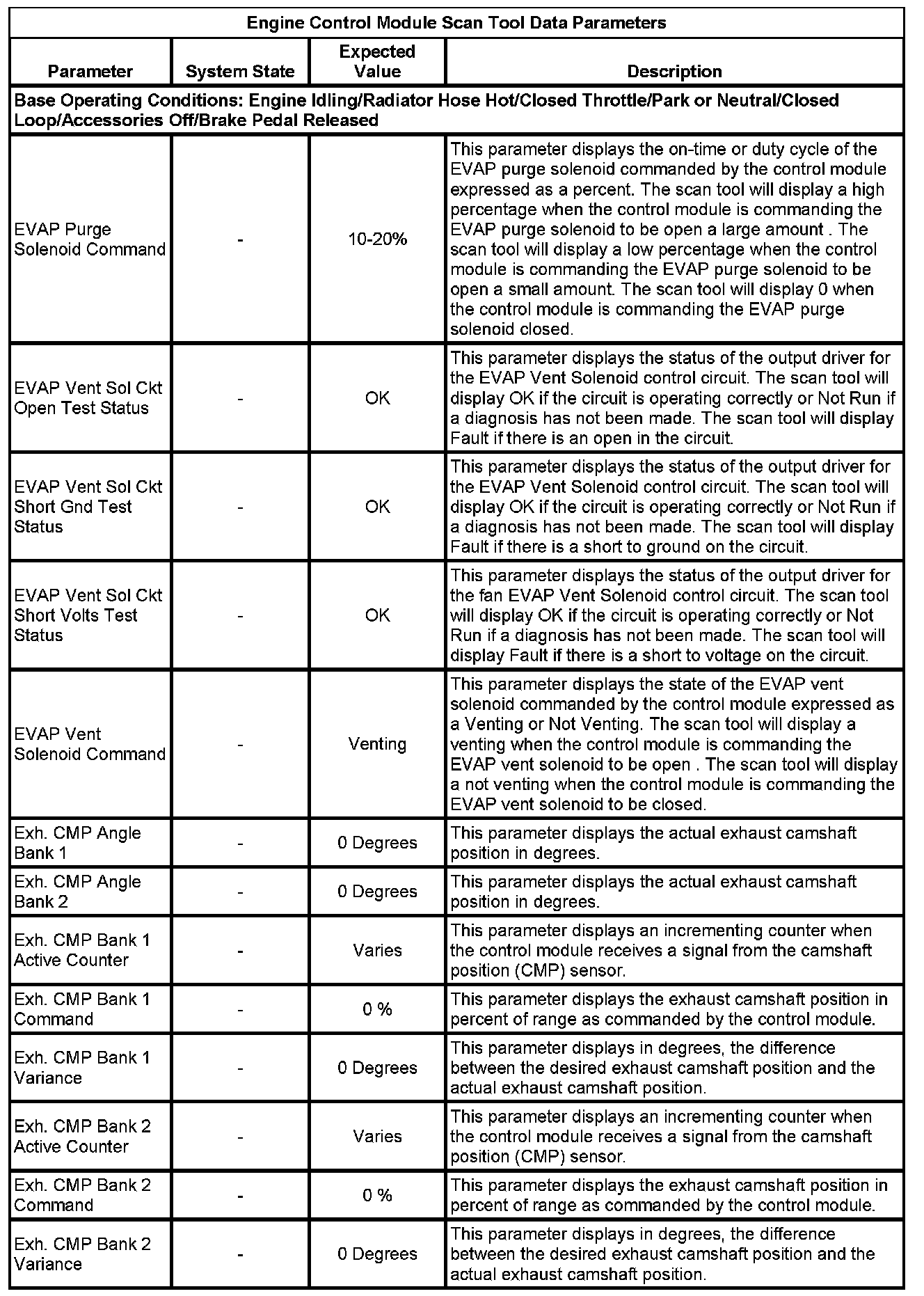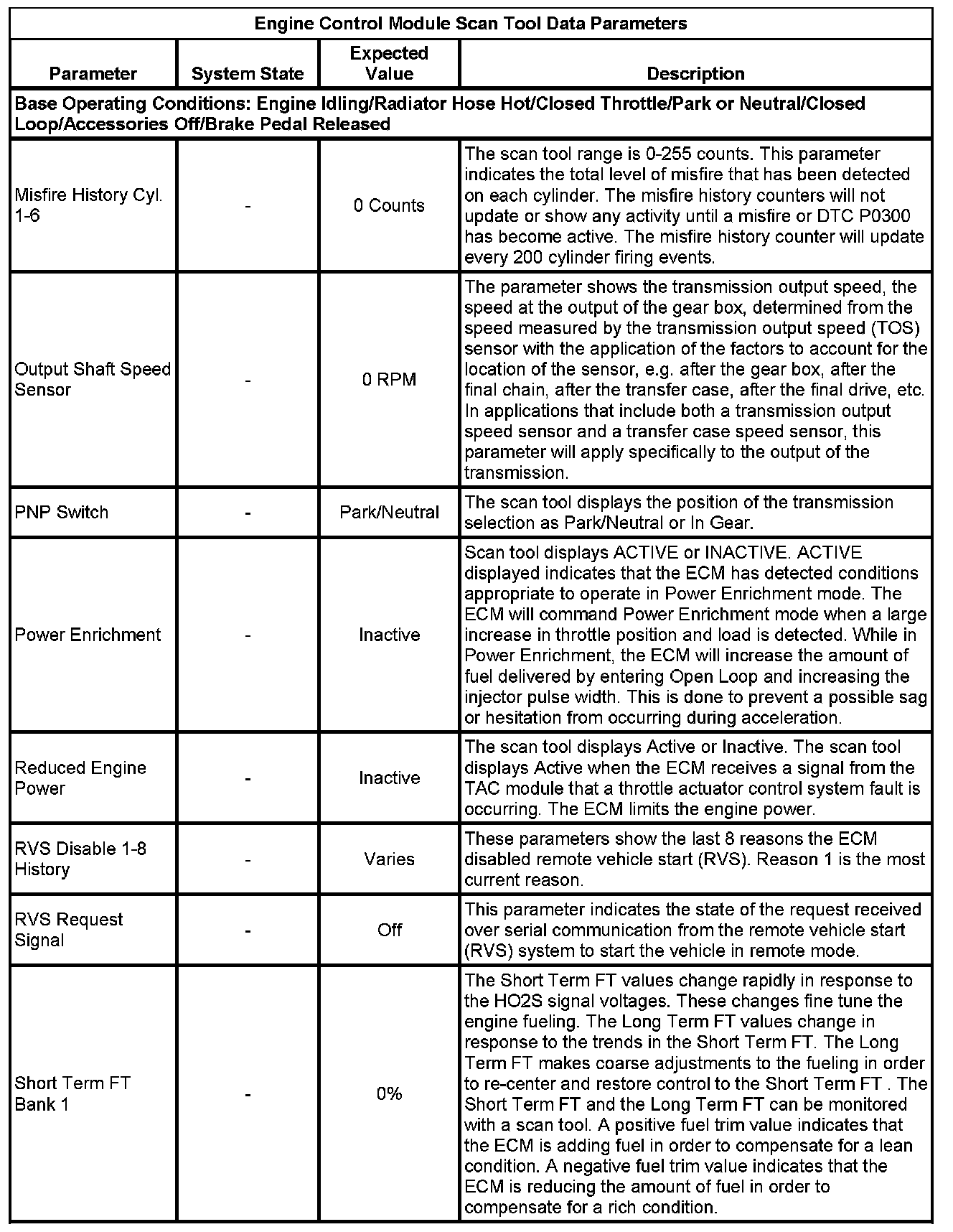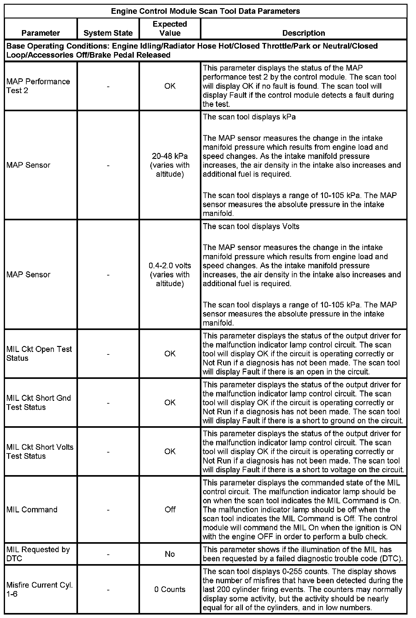 The scan tool values from a properly running engine may be used for comparison with the engine you are diagnosing. The Engine Scan Tool Data List represents values that would be seen on a normally running engine.