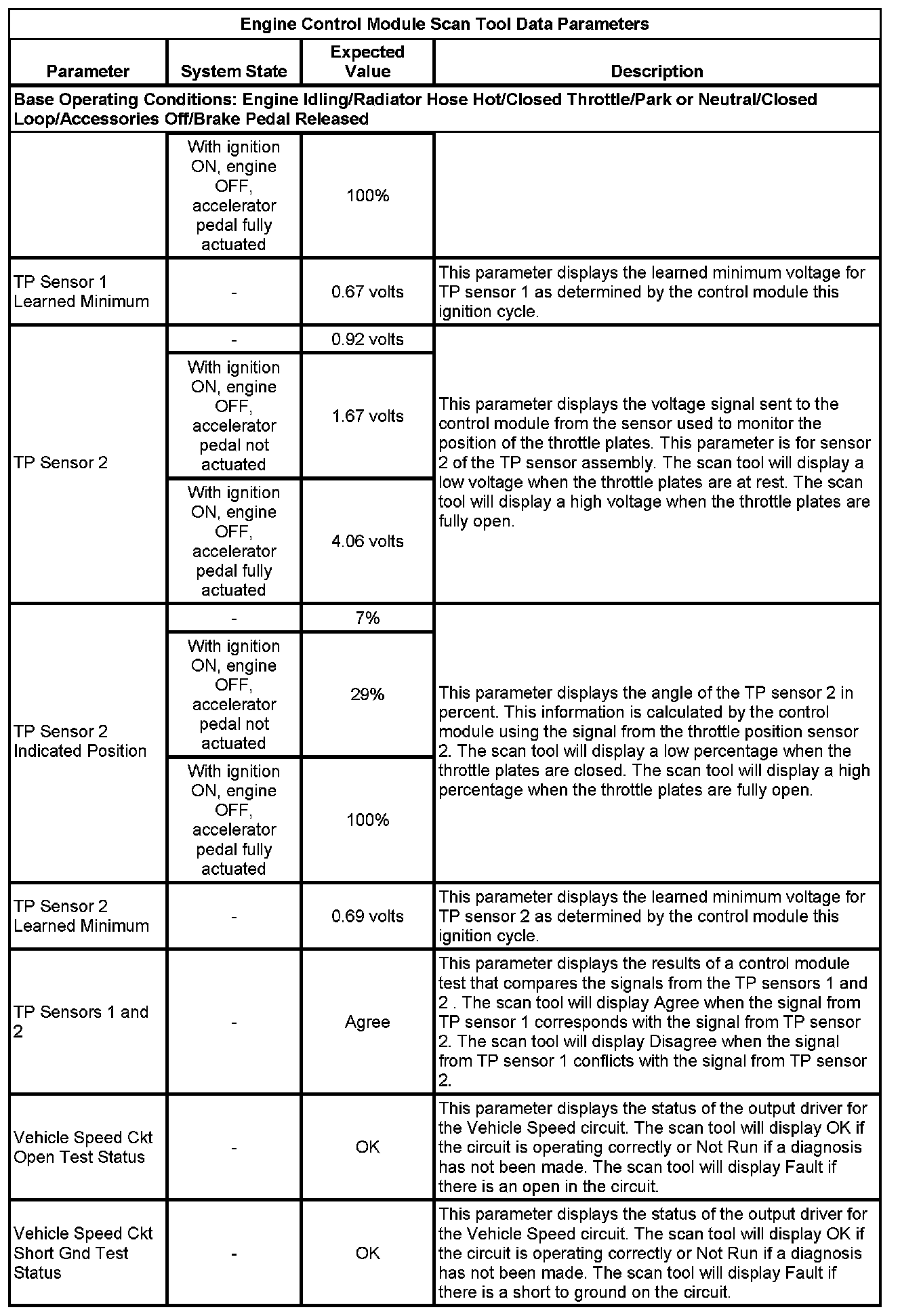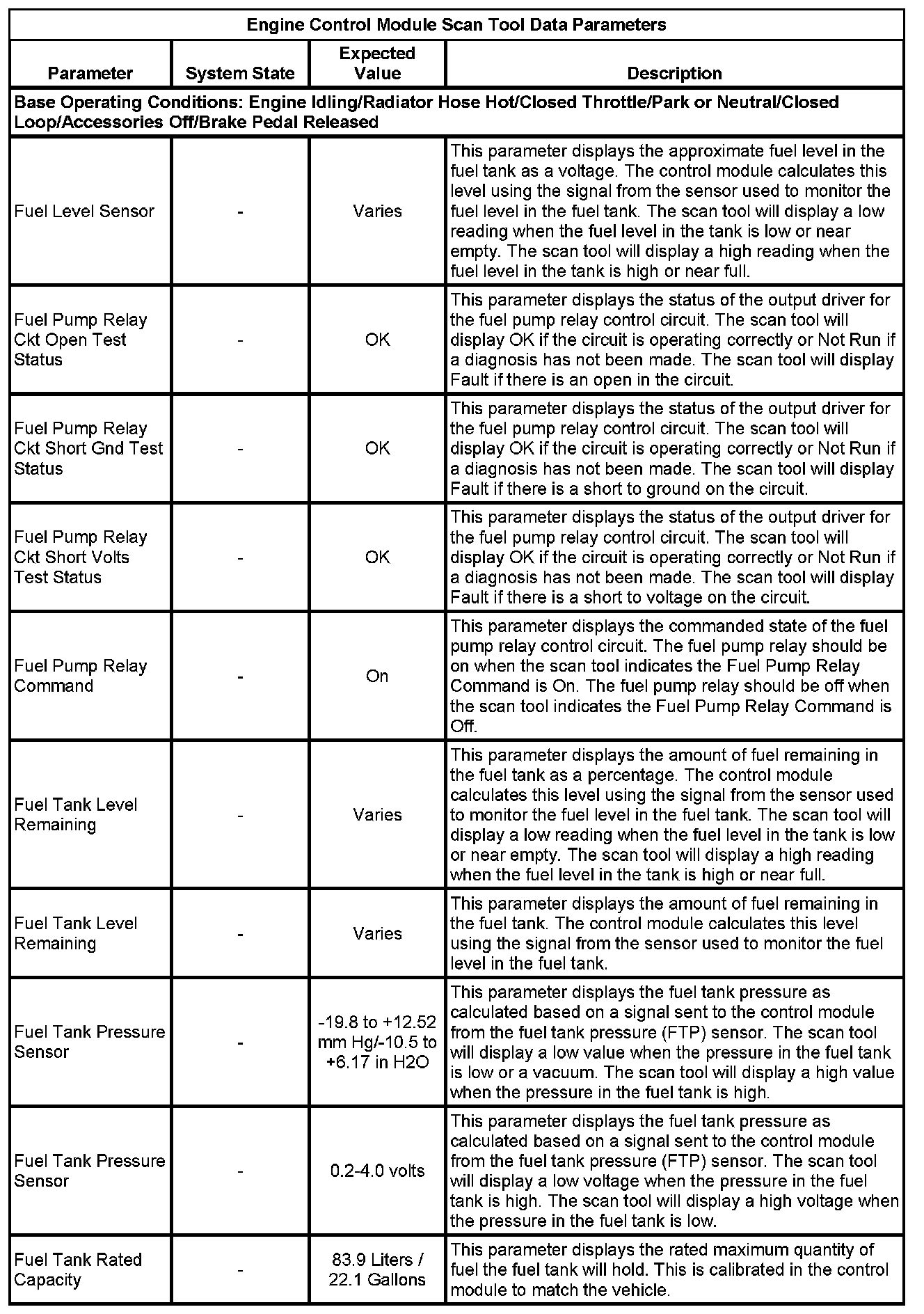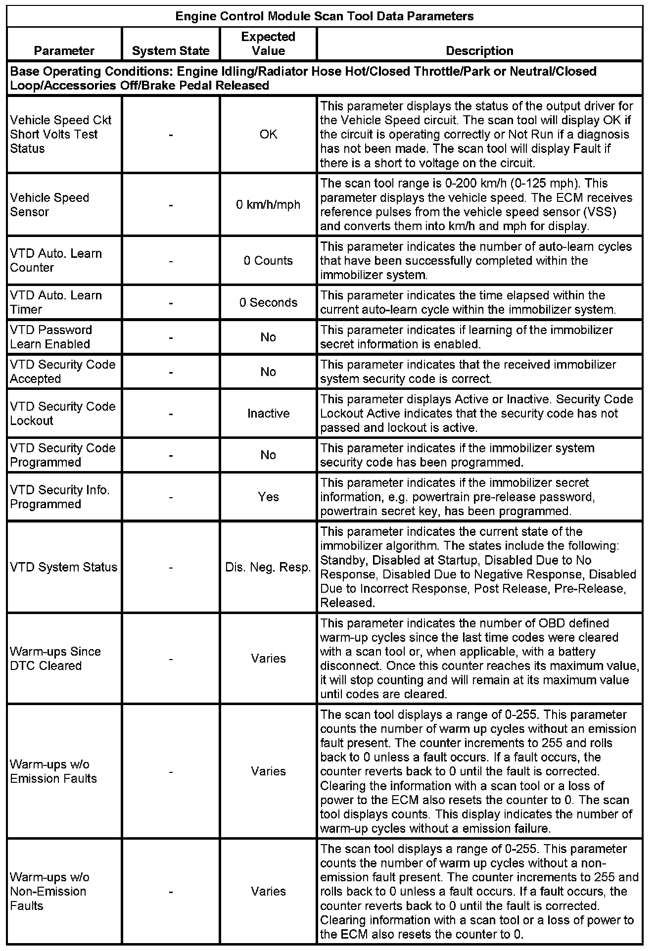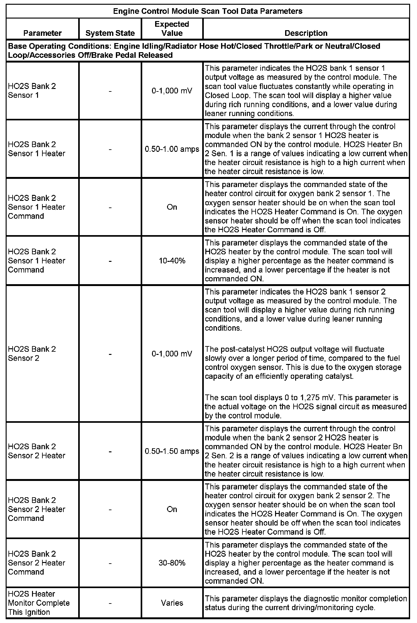The scan tool values from a properly running engine may be used for comparison with the engine you are diagnosing. The Engine Scan Tool Data List represents values that would be seen on a normally running engine.