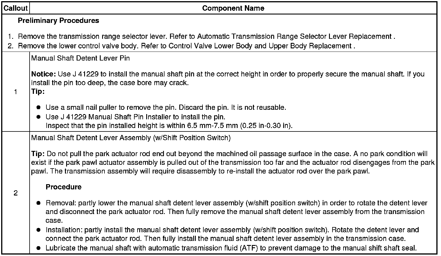 Manual Shift Detent Lever and Shaft Position Switch Assembly Replacement
