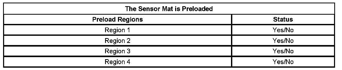 The PPS will fail the preload test when a region has detected a preload/pressure on it. If a preload test fails, the scan tool will display a chart as illustrated below. A Yes status indicates which region(s) have a preload condition. Refer to the chart below and the above illustration to identify the failed region.
