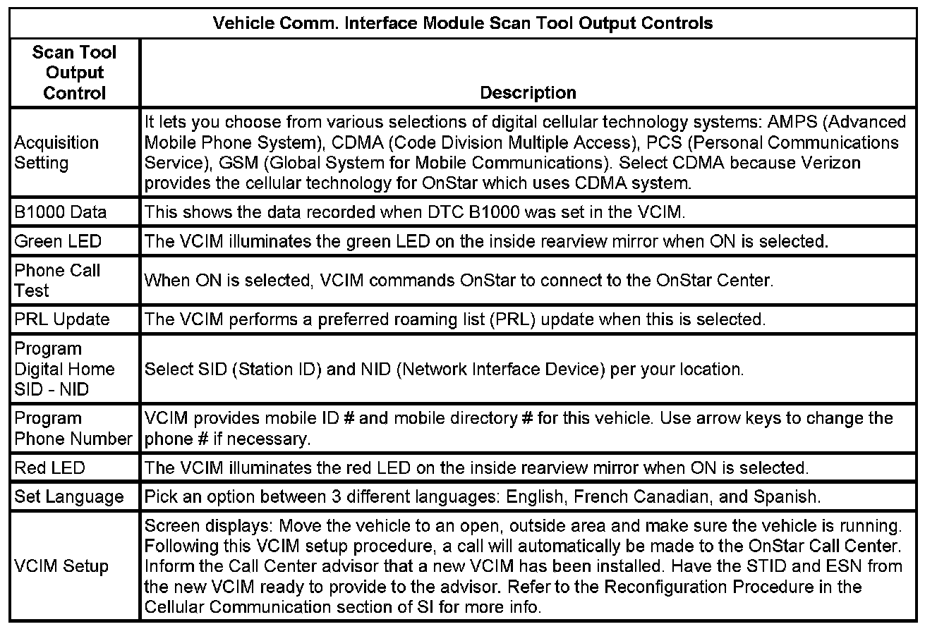 Communication Interface Module Scan Tool Information