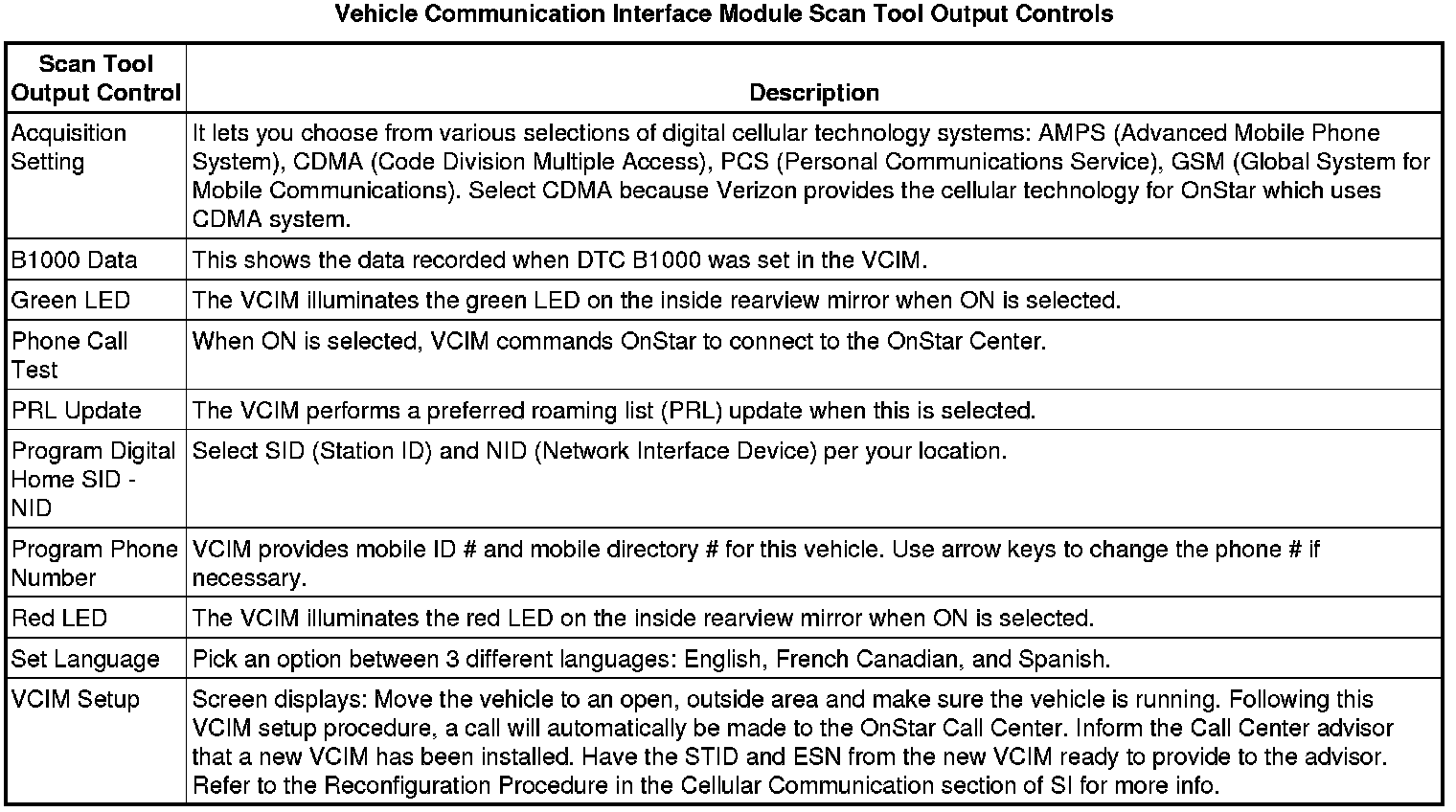 Communication Interface Module Scan Tool Information