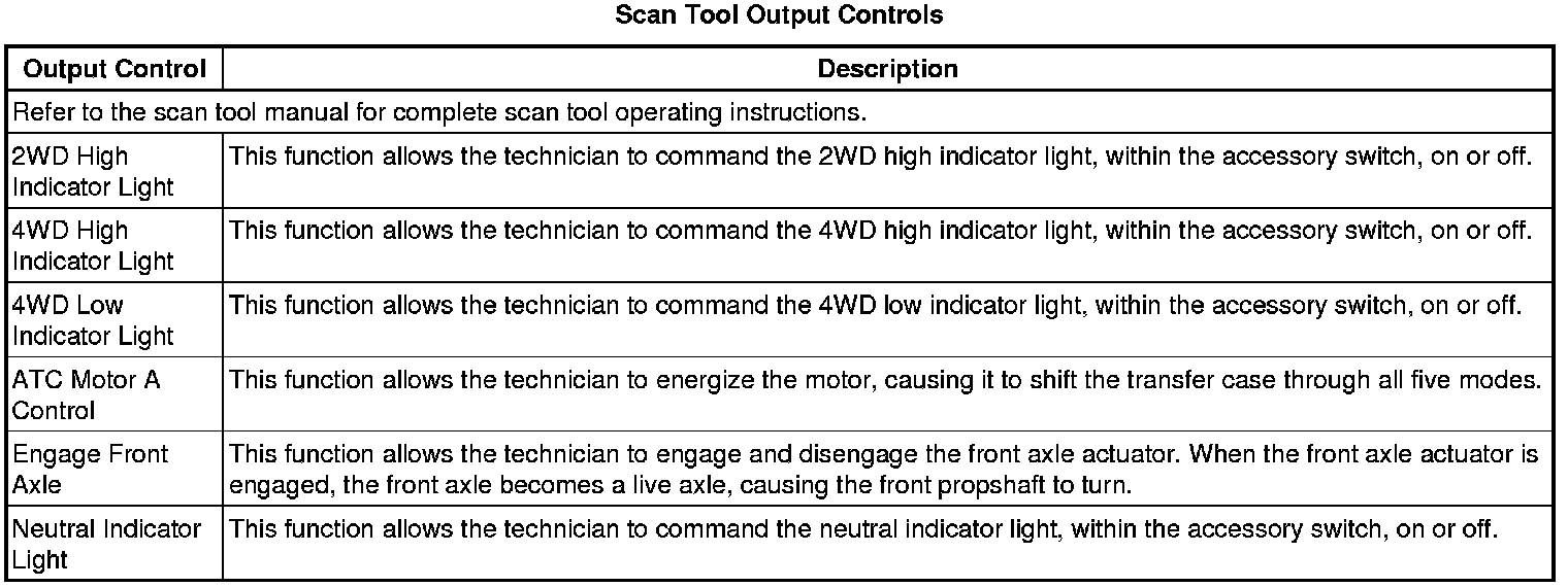 Transfer Case Shift Control Module Scan Tool Information