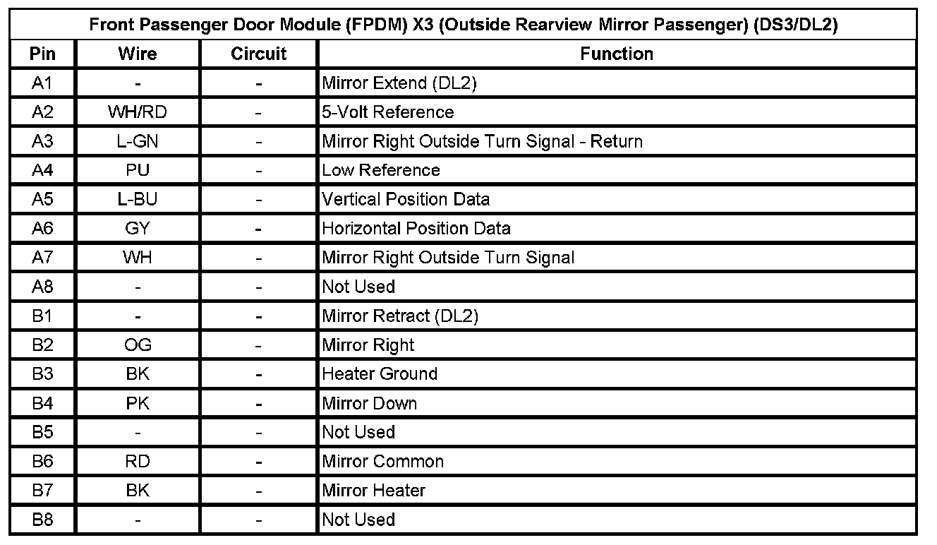 Front Passenger Door Module (FPDM) X3 (Outside Rearview Mirror Passenger) (DS3/DL2)