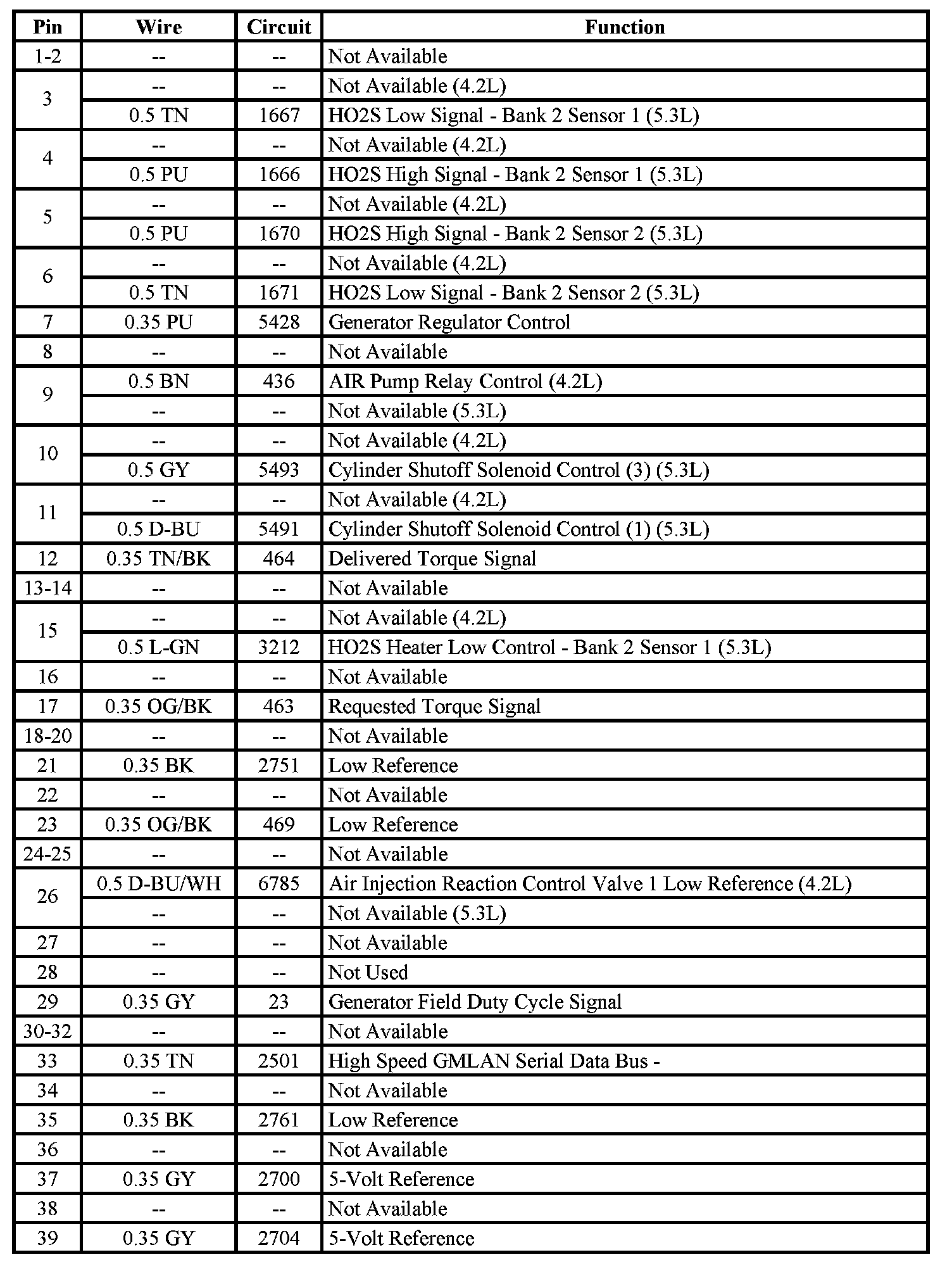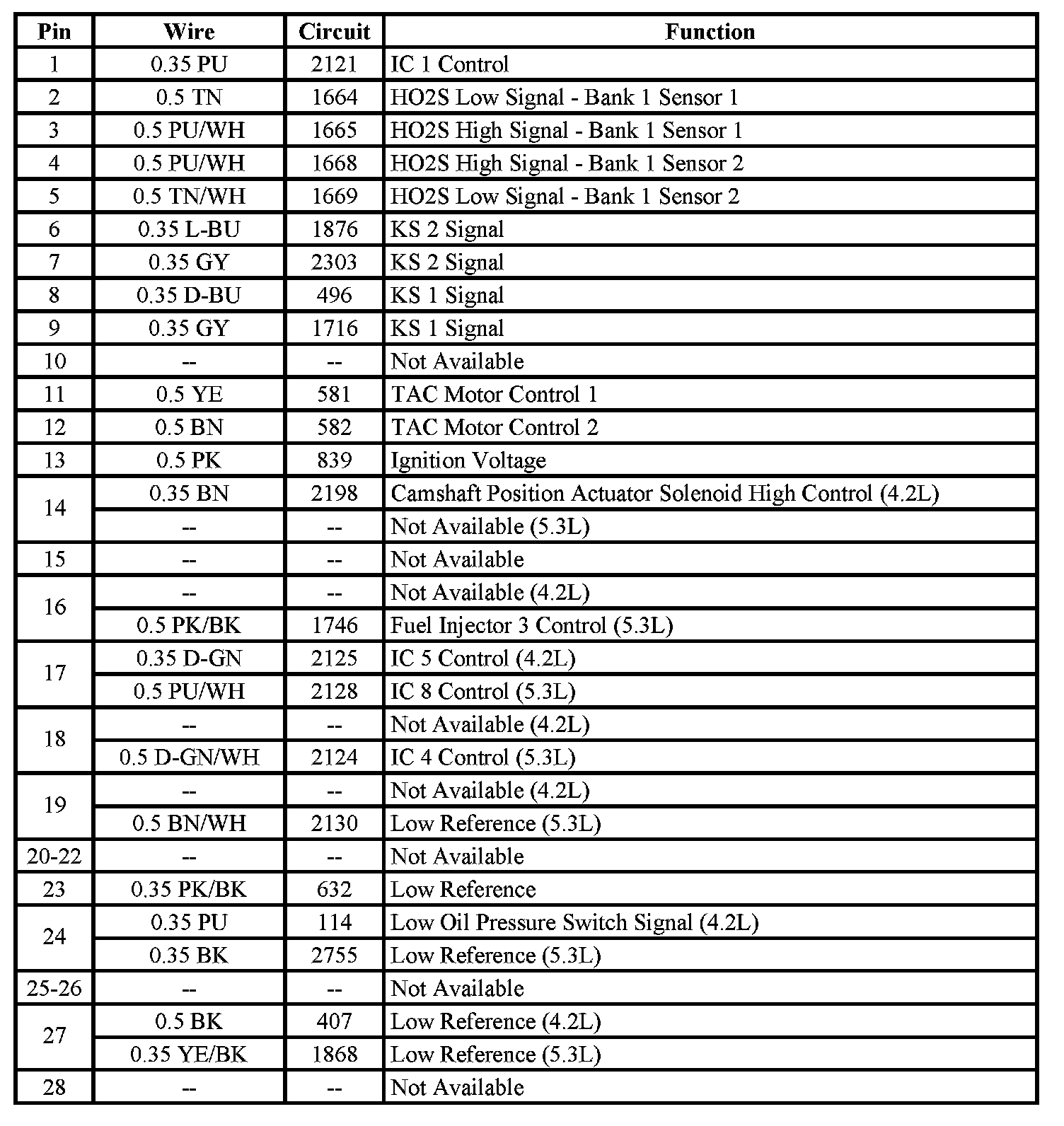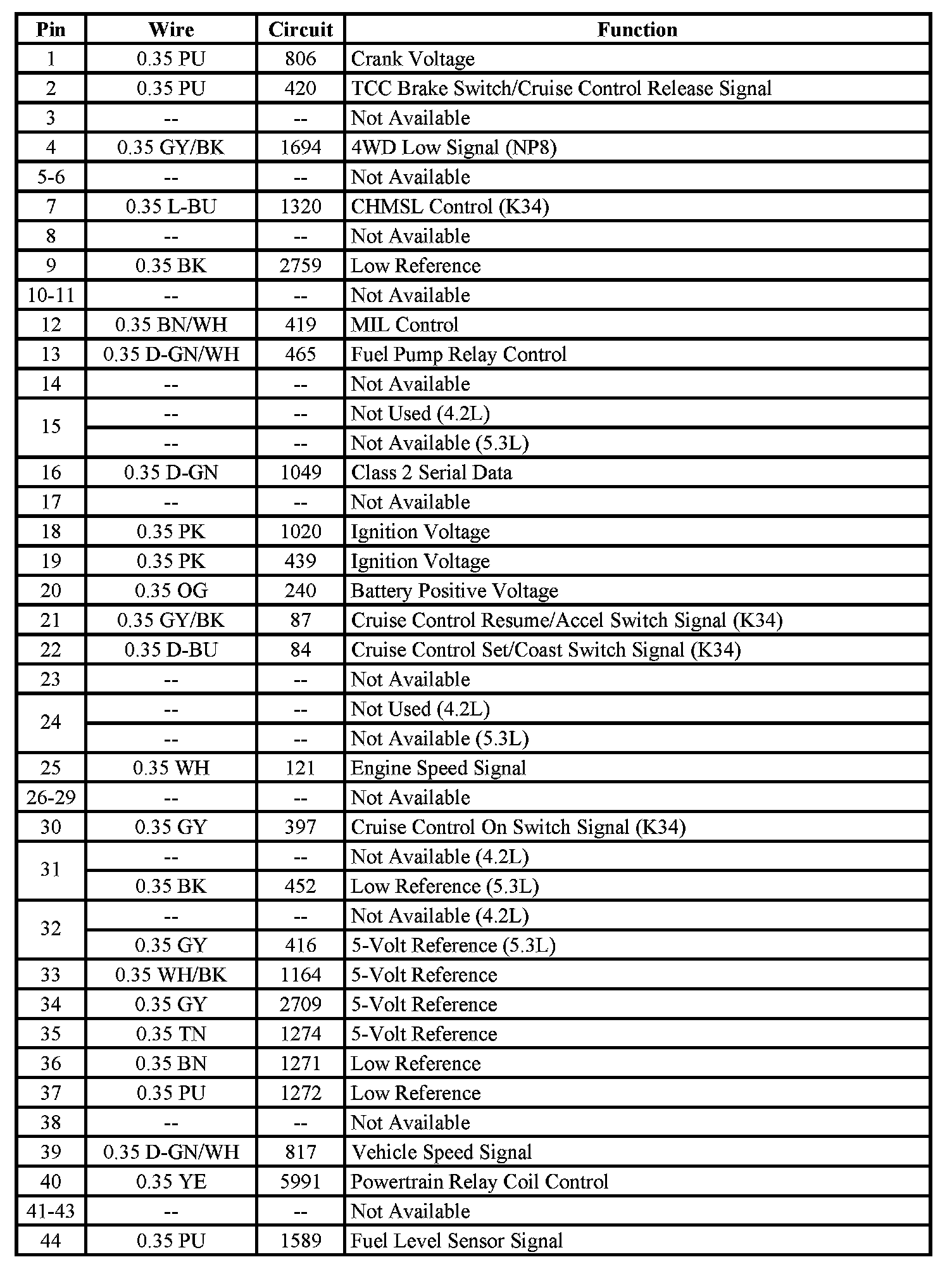 - Pins: 27, 43 (5.3L)