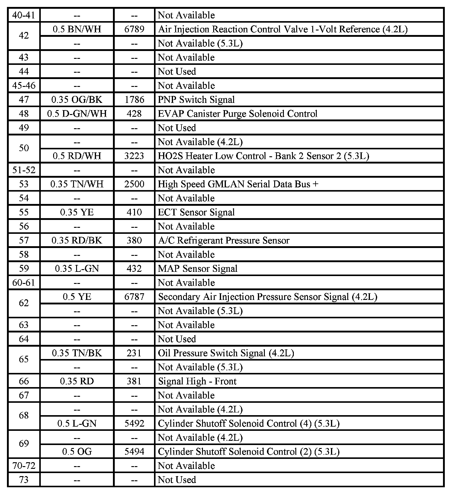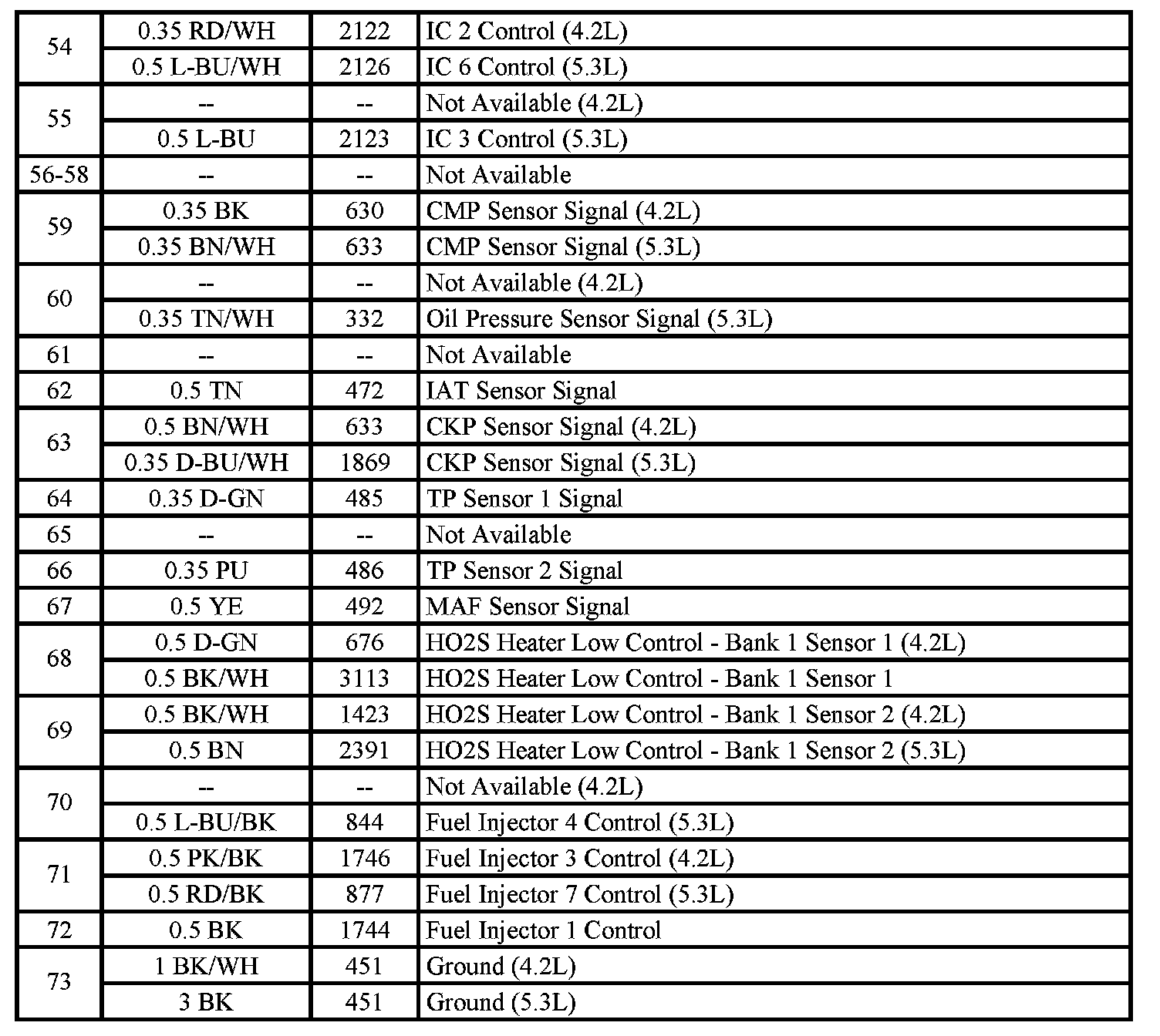 - Pin: 73 (5.3L)