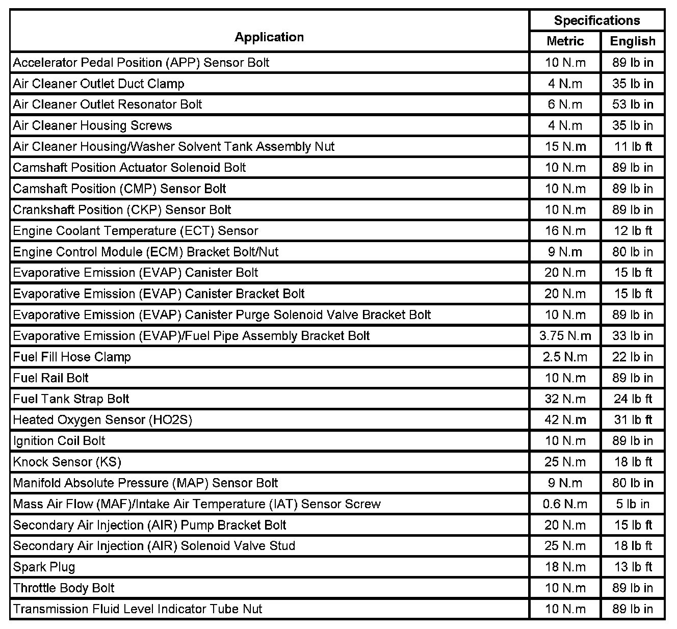 Fastener Tightening Specifications