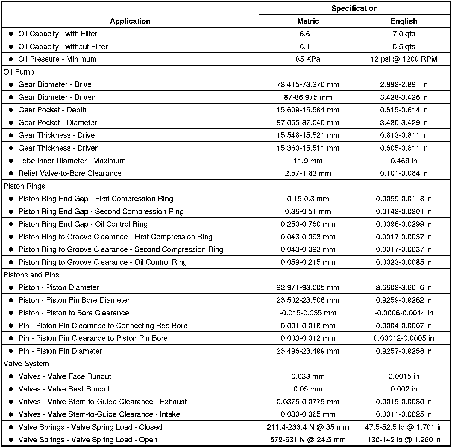 Engine Mechanical Specifications (4.2L)