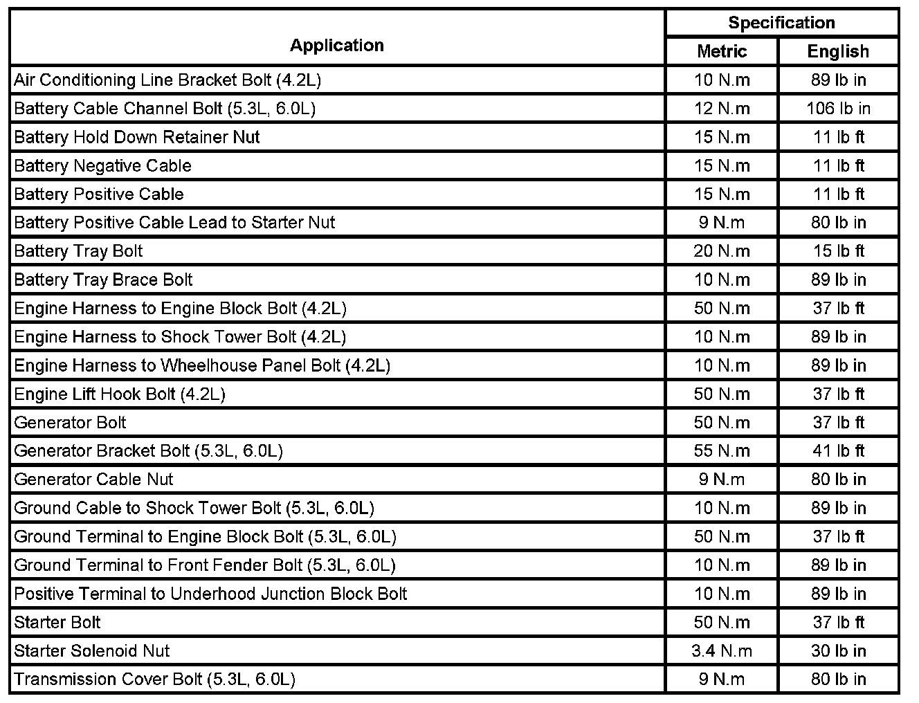 Starting and Charging: Specifications