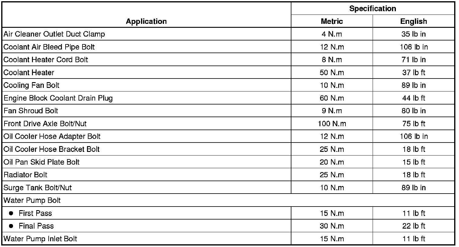 Fastener Tightening Specifications