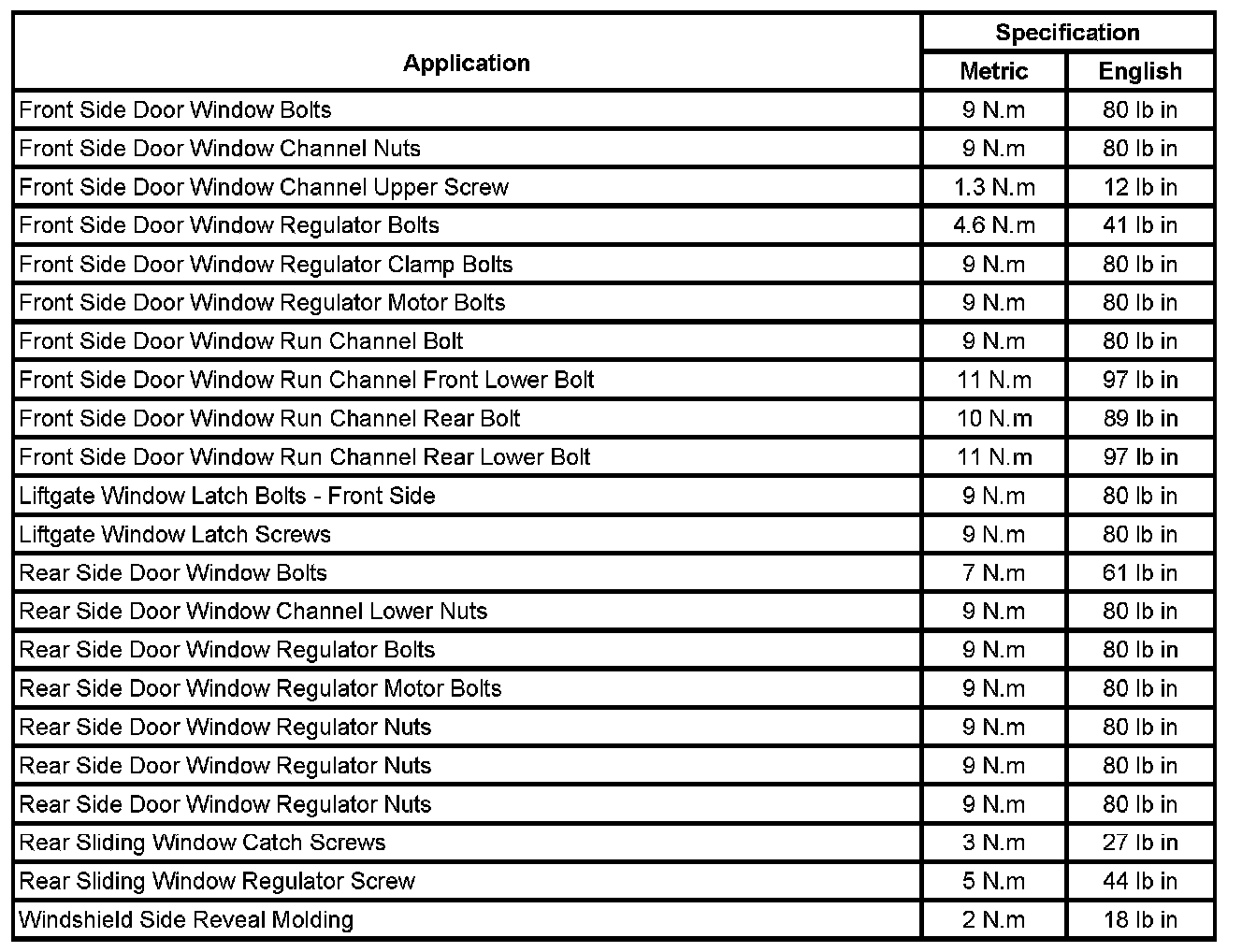 Fastener Tightening Specifications