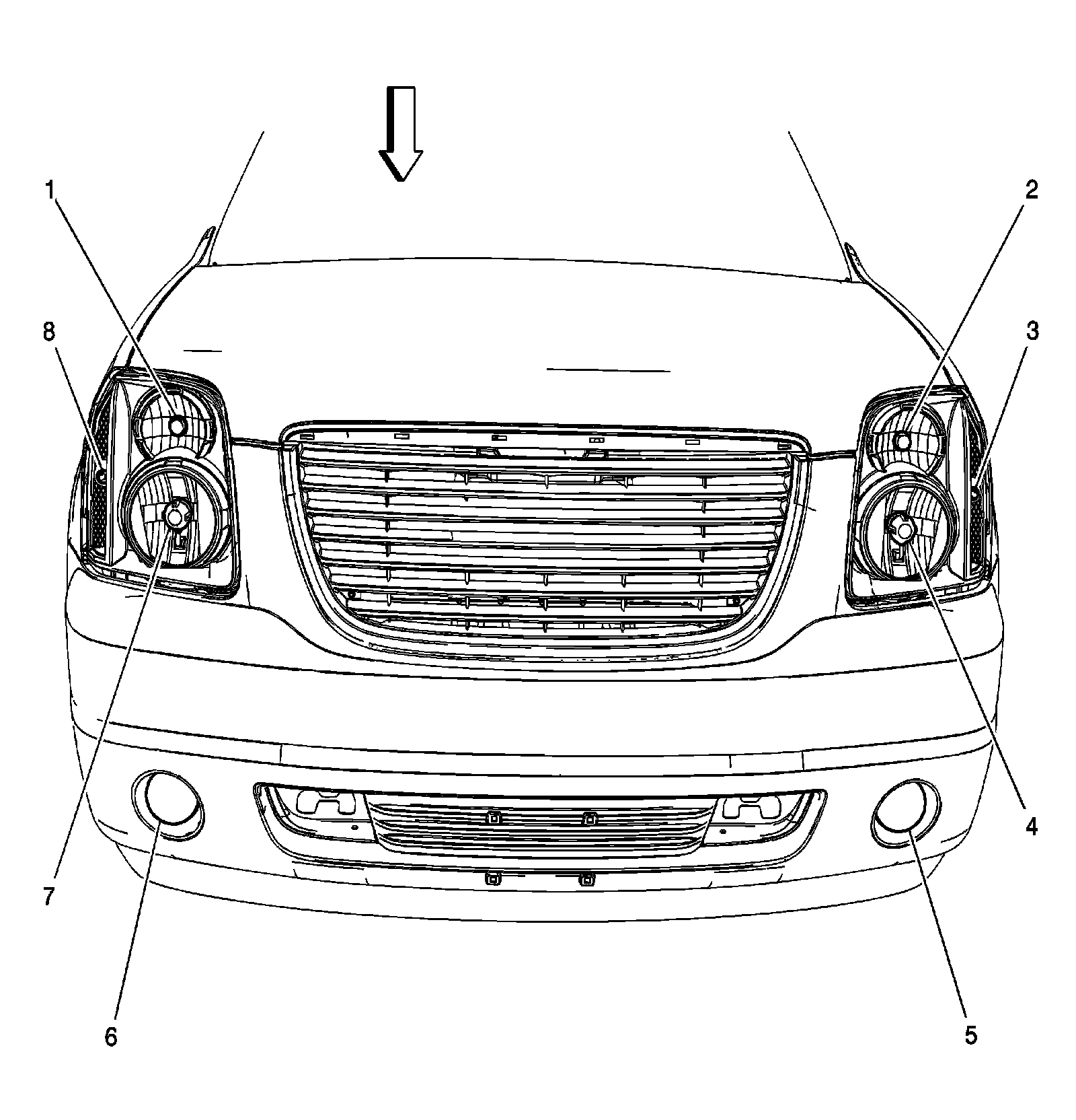 Home >> GMC >> 2008 >> Yukon 2WD V8-5.3L >> Repair and Diagnosis >> Diagrams >> Components >> Front of Vehicle/Engine Compartment Component Views