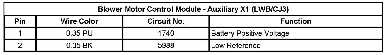 Blower Motor Control Module - Auxiliary X1 (LWB/CJ3)