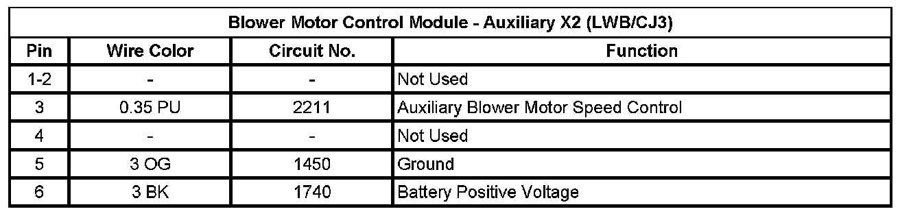 Blower Motor Control Module - Auxiliary X2 (LWB/CJ3)