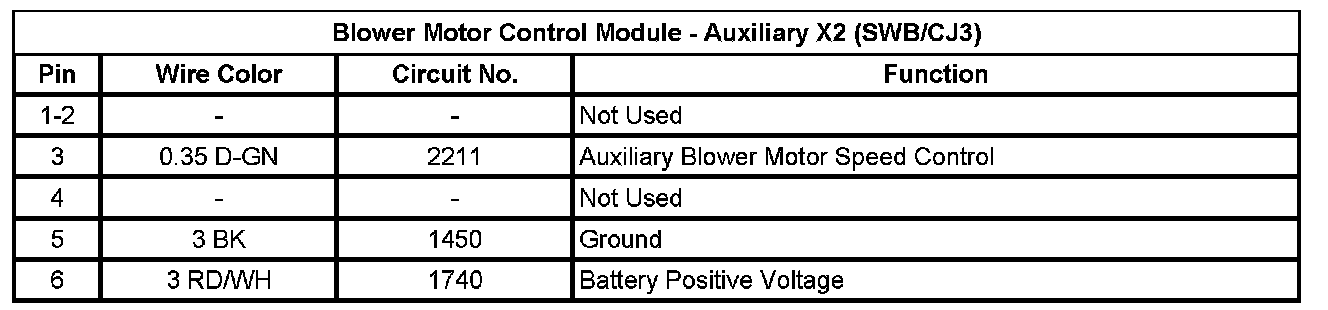 Blower Motor Control Module - Auxiliary X1 (SWB/CJ3)