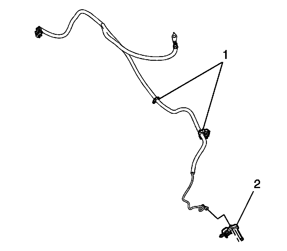 4. Mark the location of the negative battery cable clips (1) and remove the clips from the cable.