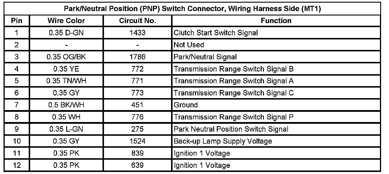 Park/Neutral Position (PNP) Switch Connector, Wiring Harness Side (MT1)
