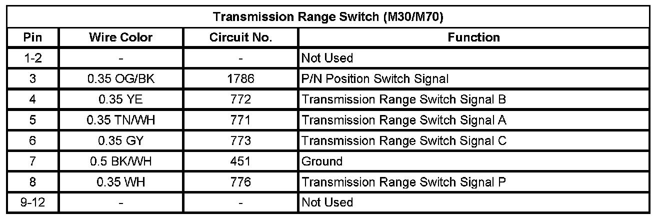 Transmission Range Switch (M30/M70)