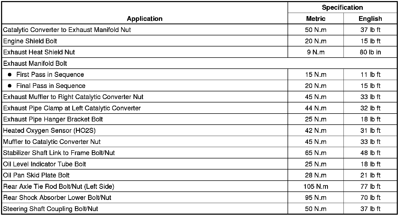 Fastener Tightening Specifications