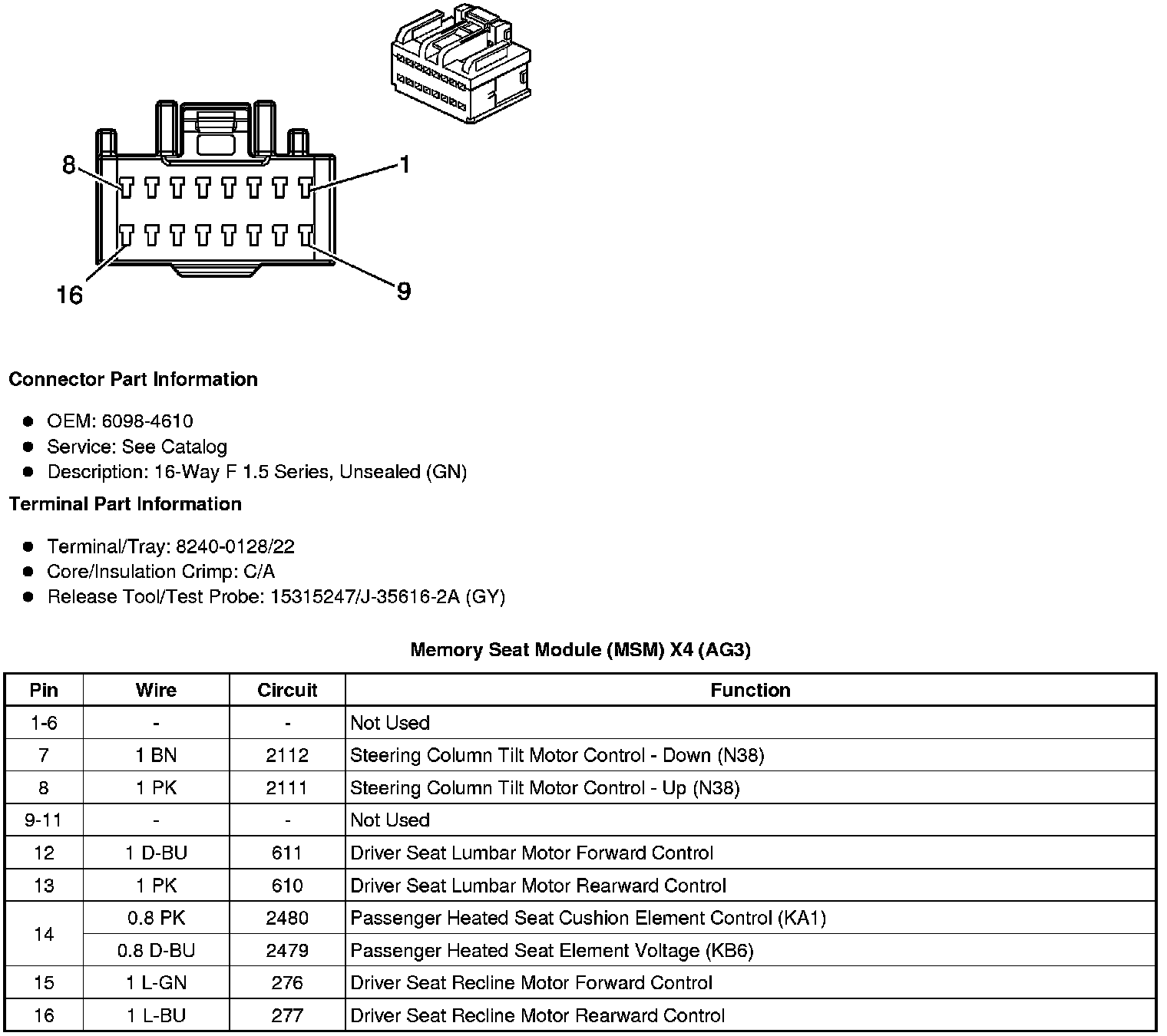Home >> GMC >> 2009 >> Acadia FWD V6-3.6L >> Repair and Diagnosis >> Diagrams >> Connector Views >> Memory Positioning Module