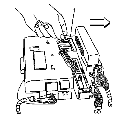 7. Disconnect the body wiring extension (1) from the BCM.