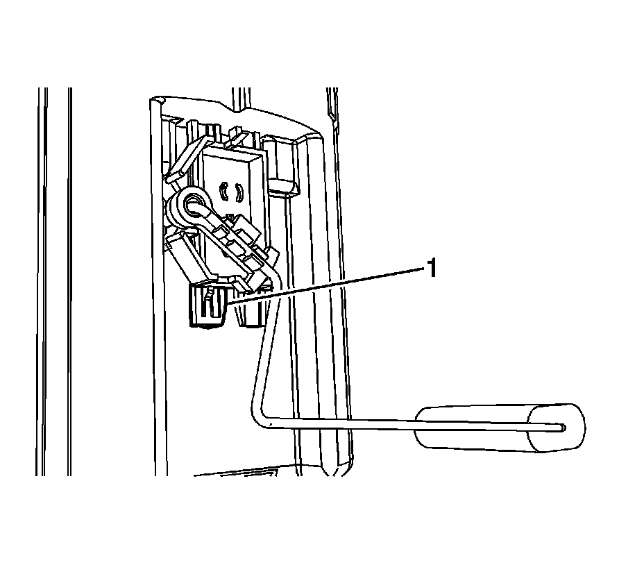 2. Push down the fuel level sensor pigtail electrical connector retainer (1) and remove the connector from the module cover.